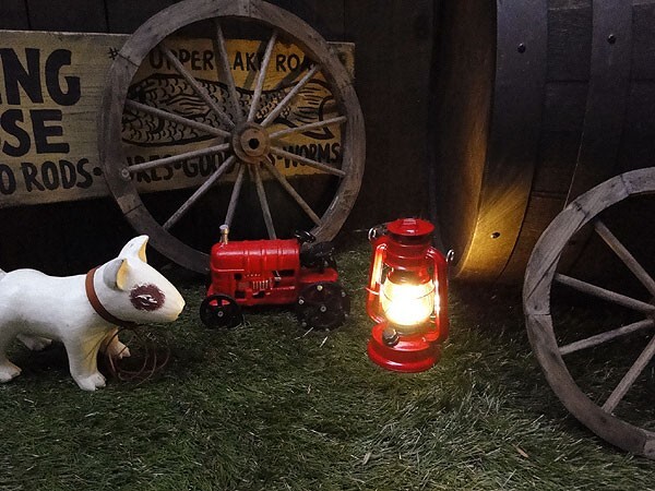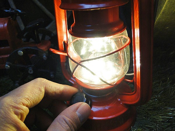 通常この手のランプは灯油を燃やして灯りを付けるんだけど、これは乾電池式になってるんです。