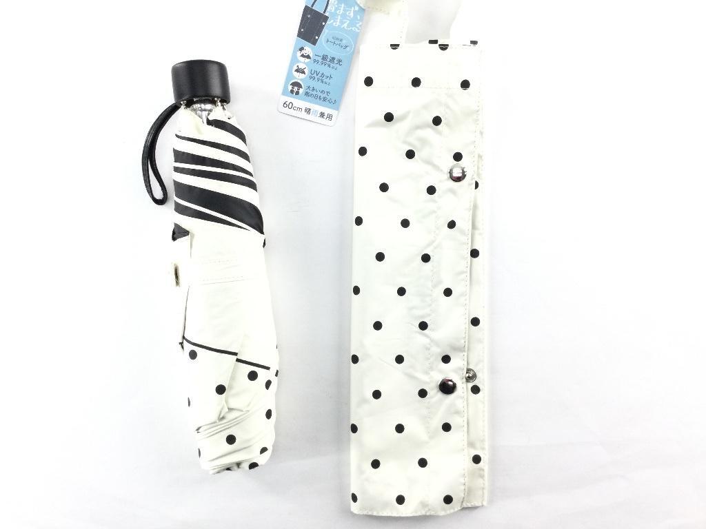 傘袋も同じドット柄で、統一感のある上品な可愛らしさを演出します。色:ドット柄・アイボリー