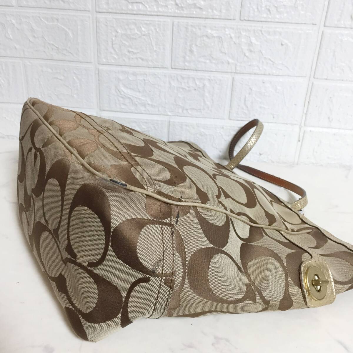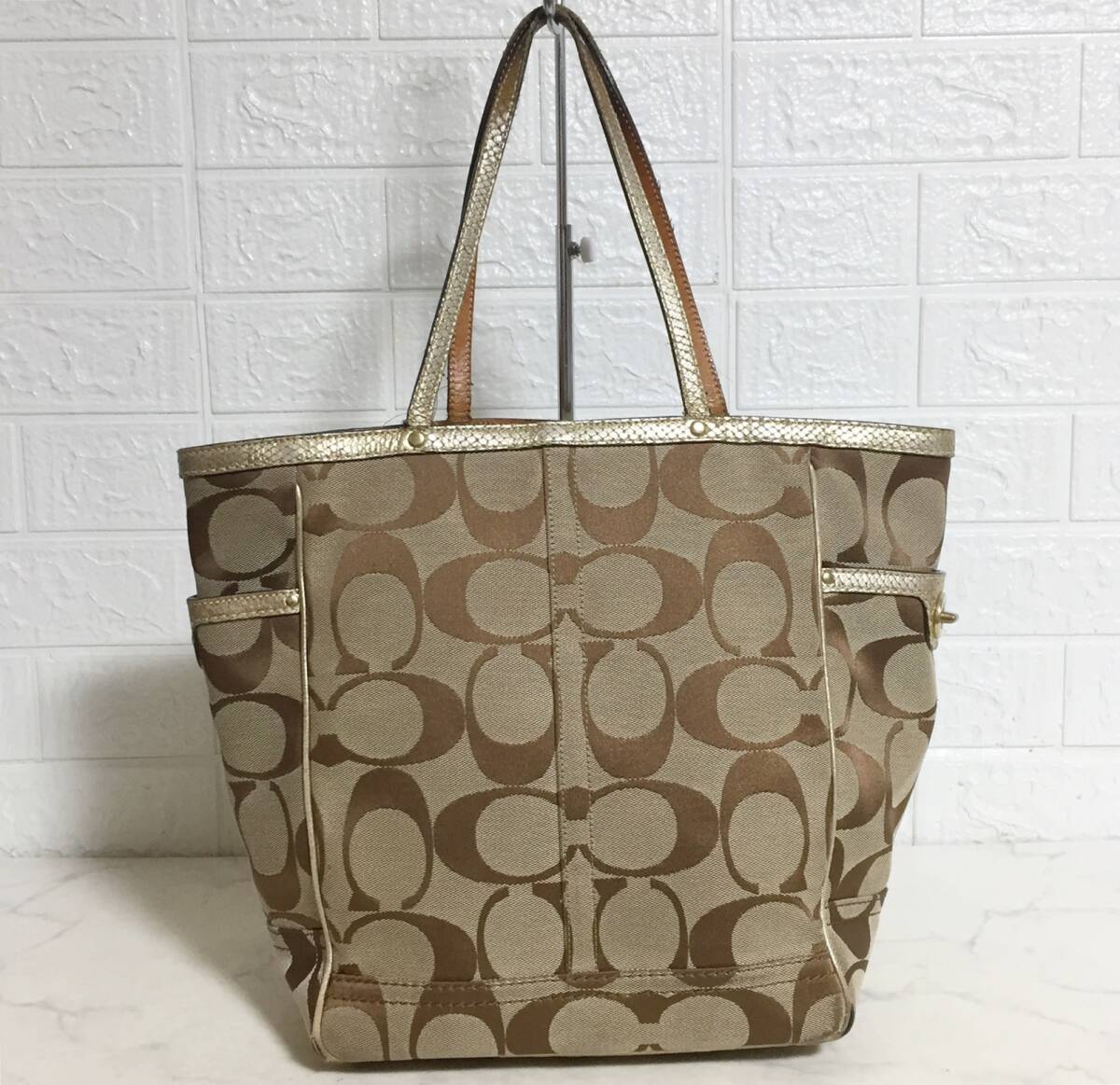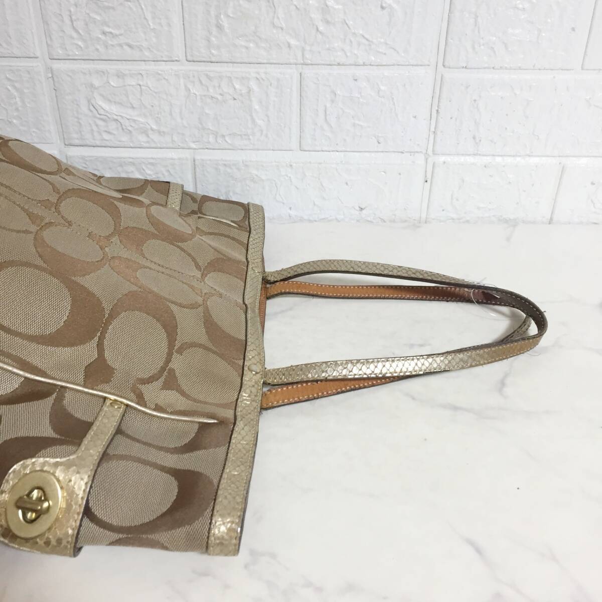 no32373 COACH コーチ 8626 本革 レザー パイソン型押 キャンバス シグネチャー 肩掛けショルダー トート バッグ 通勤 通学 A4収納可能