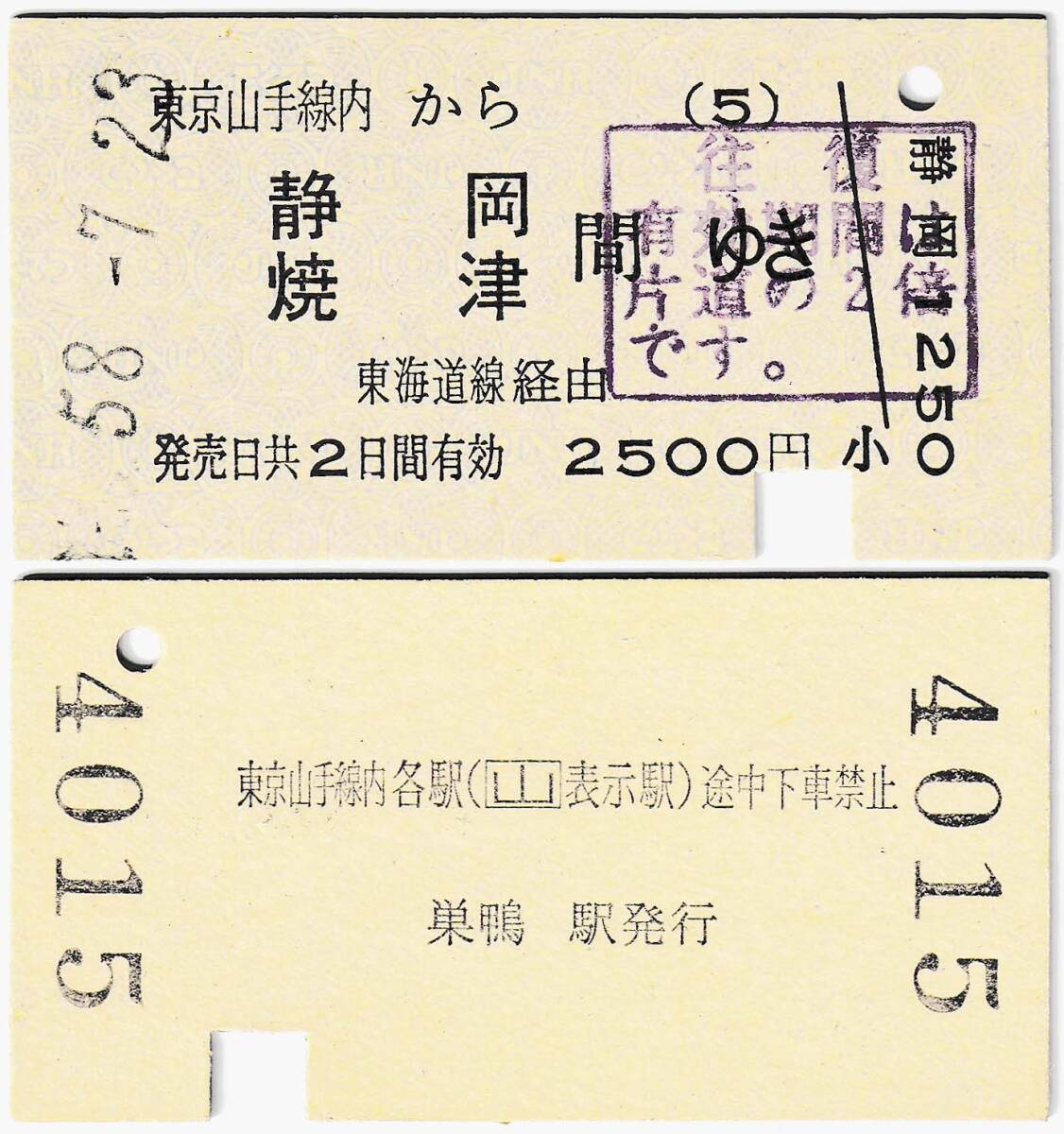 国鉄 コード付き乗車券  5 昭和58年 東京山手線内 → 静岡・焼津間ゆき
