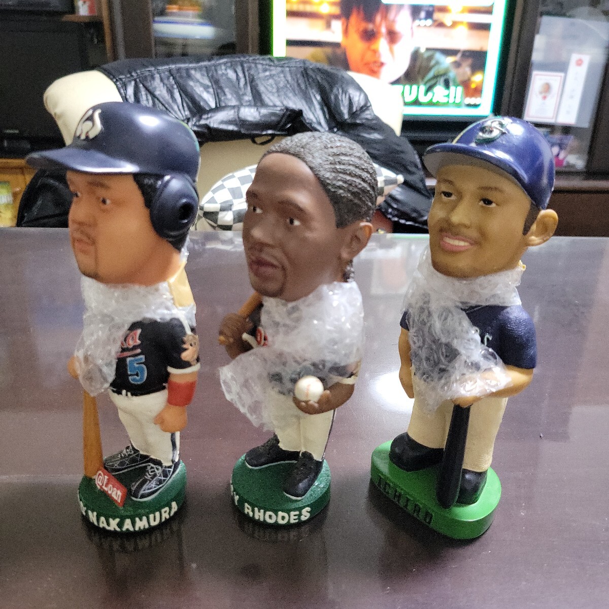 ノリ、ローズは球場配布でイチローは販売品です。イチローのヘルメットに劣化があります。箱はありません。