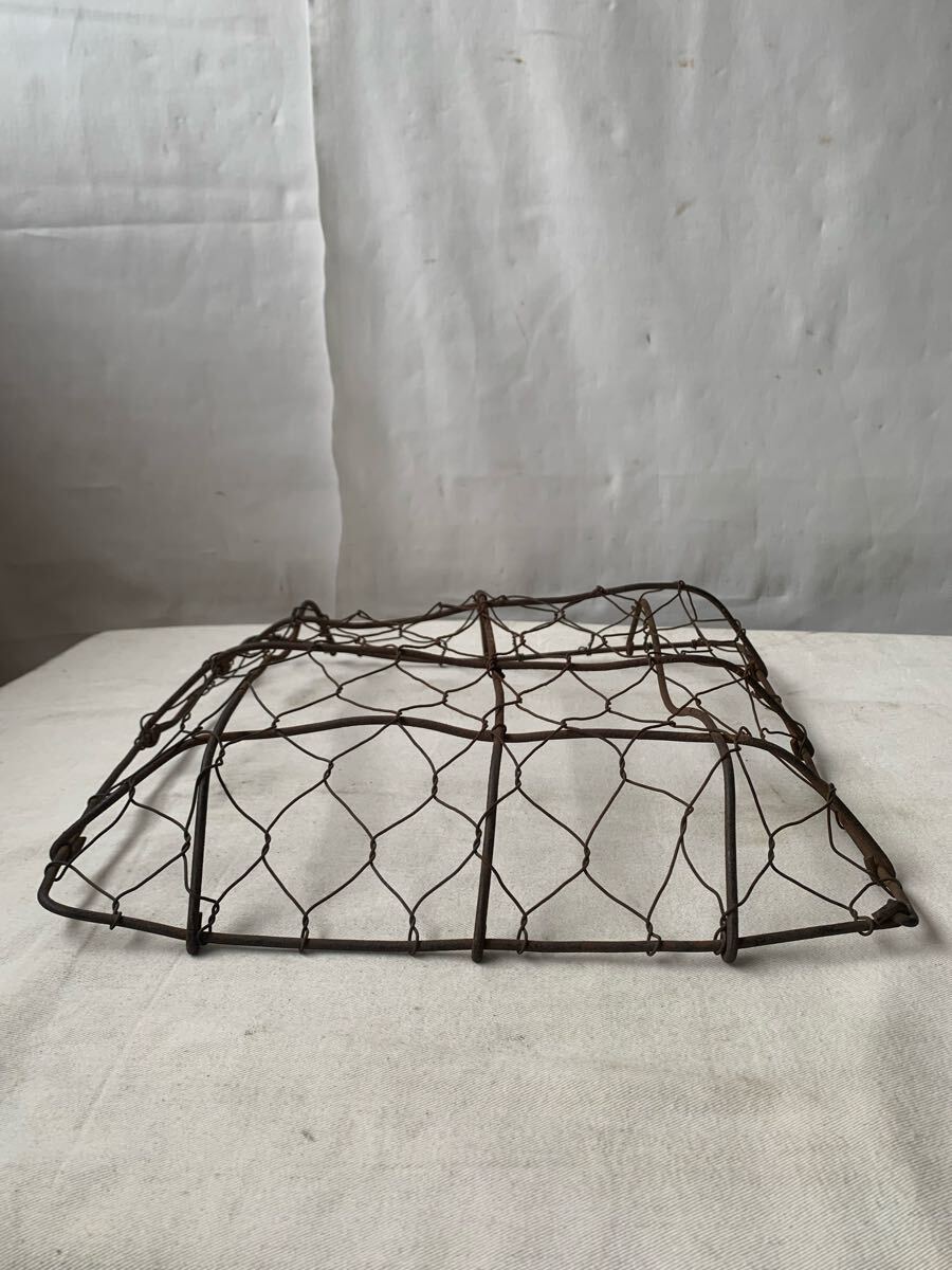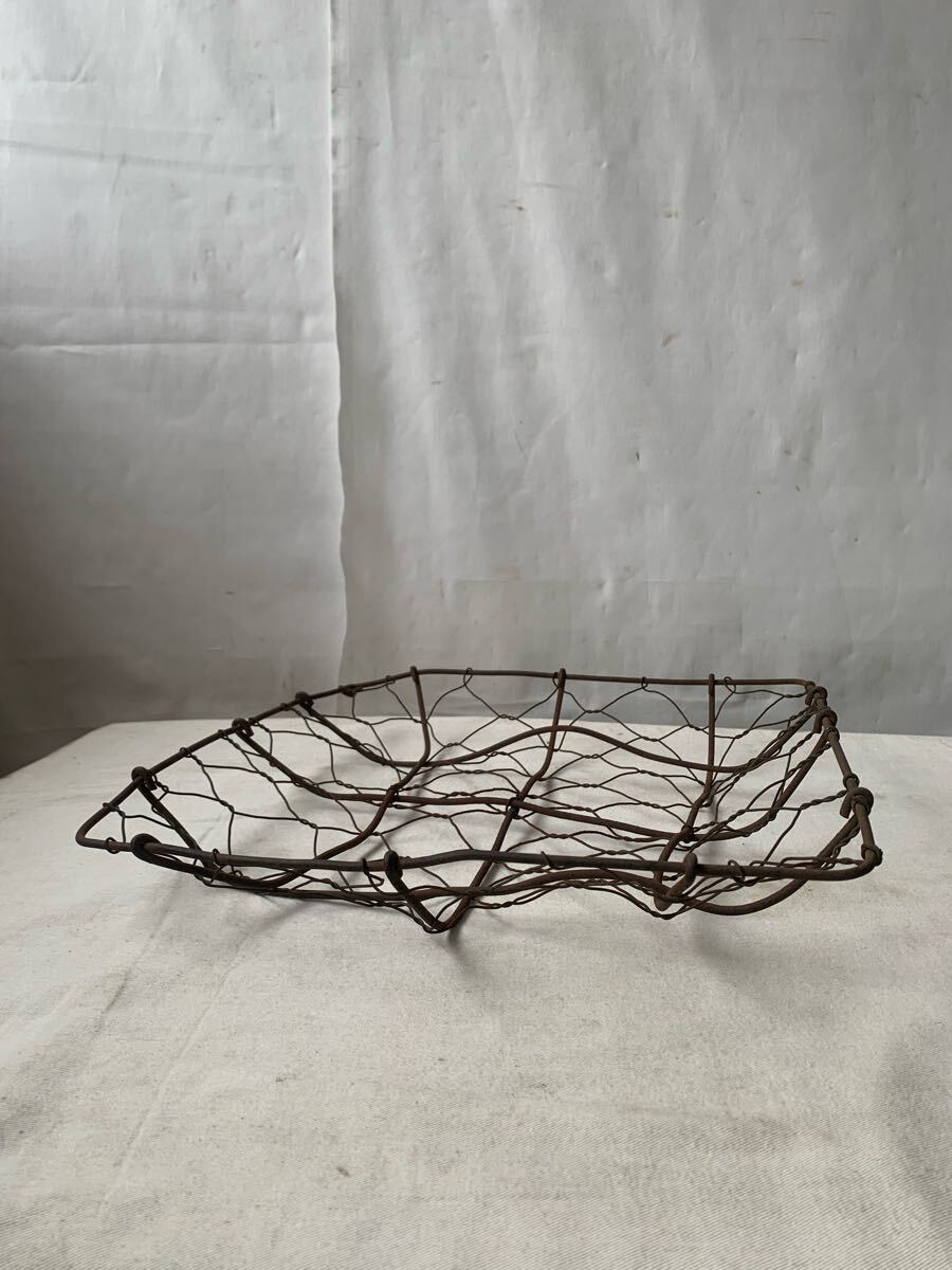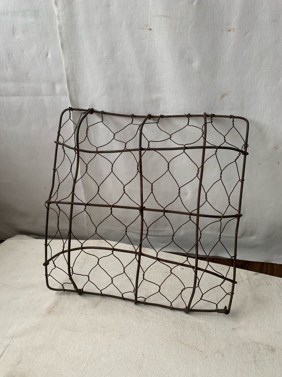 経年の雰囲気が素敵な四角いメッシュカゴです。雑誌や小物などの収納に、また中に植物などを入れたり、壁に掛けても素敵だと思います。