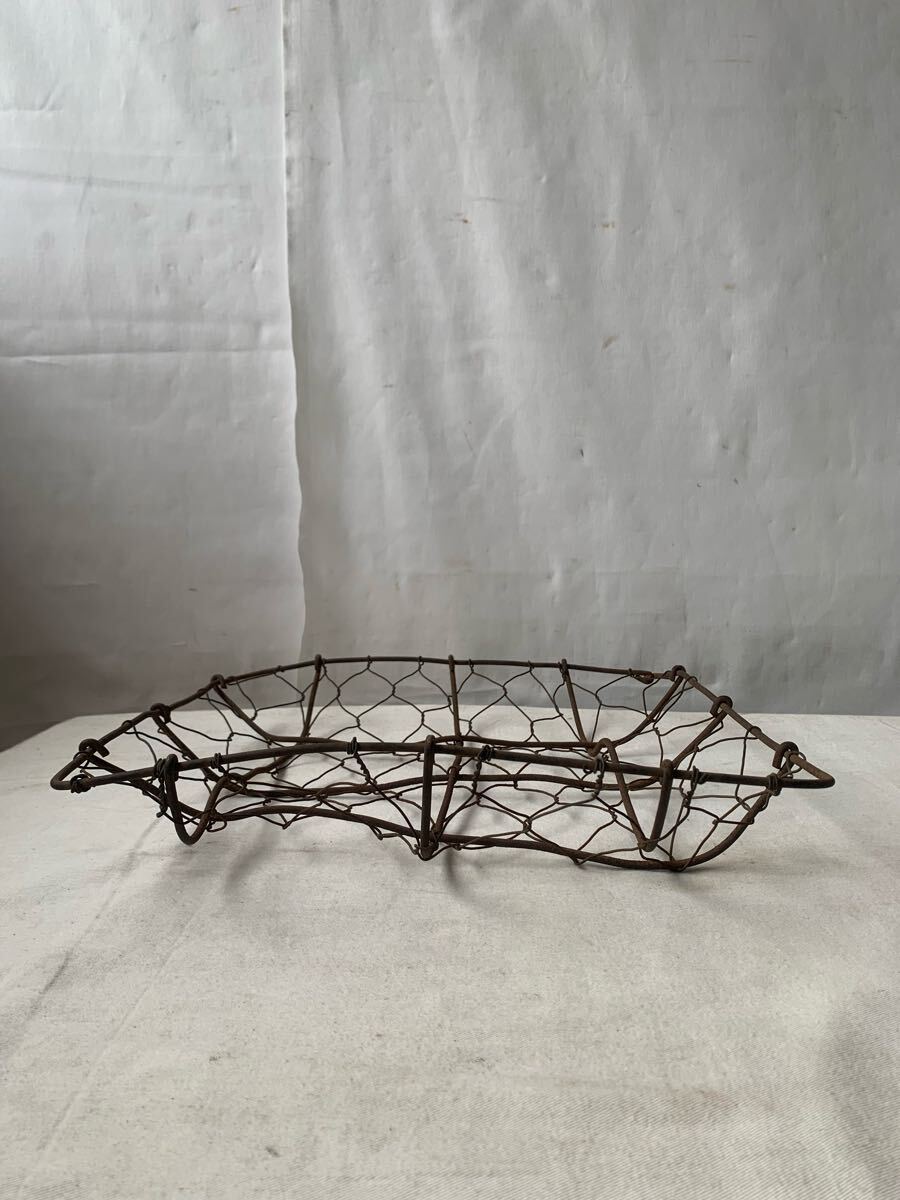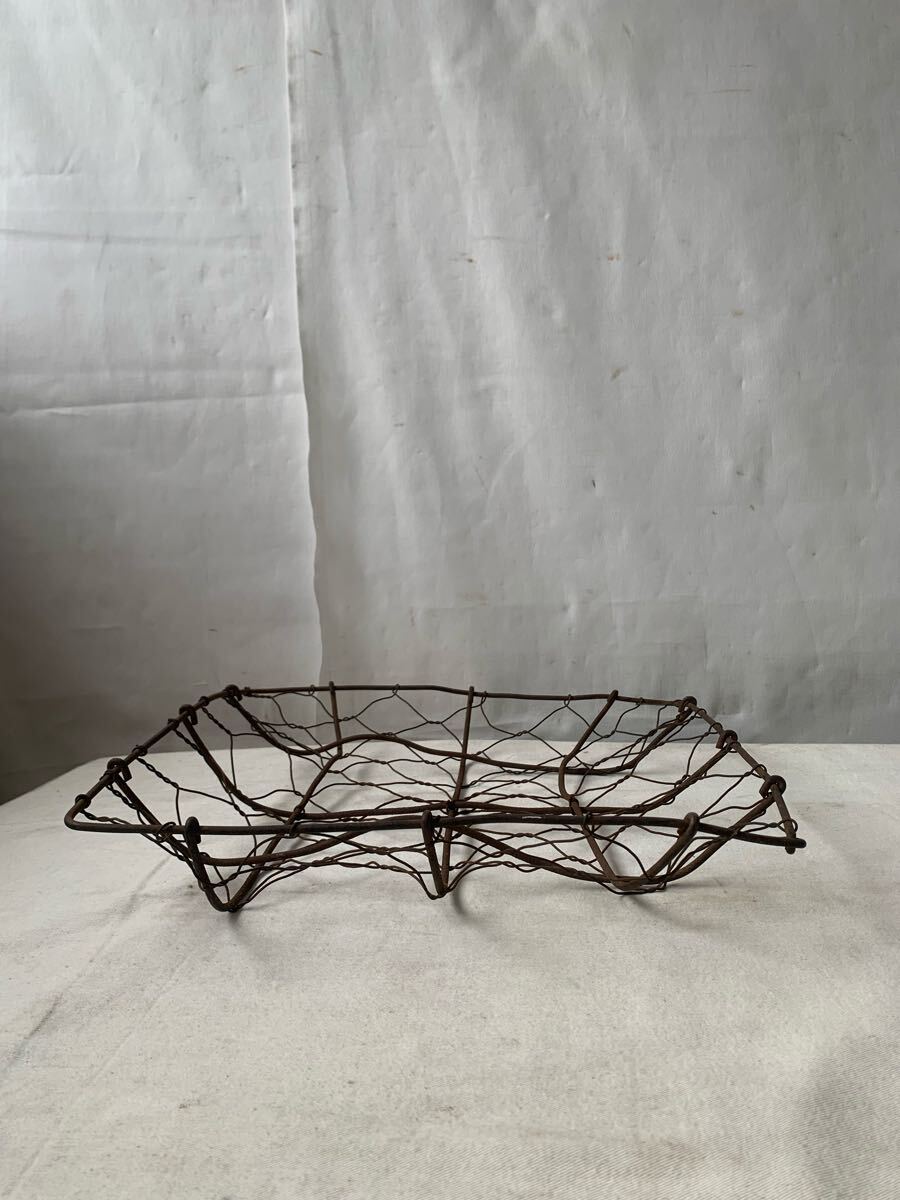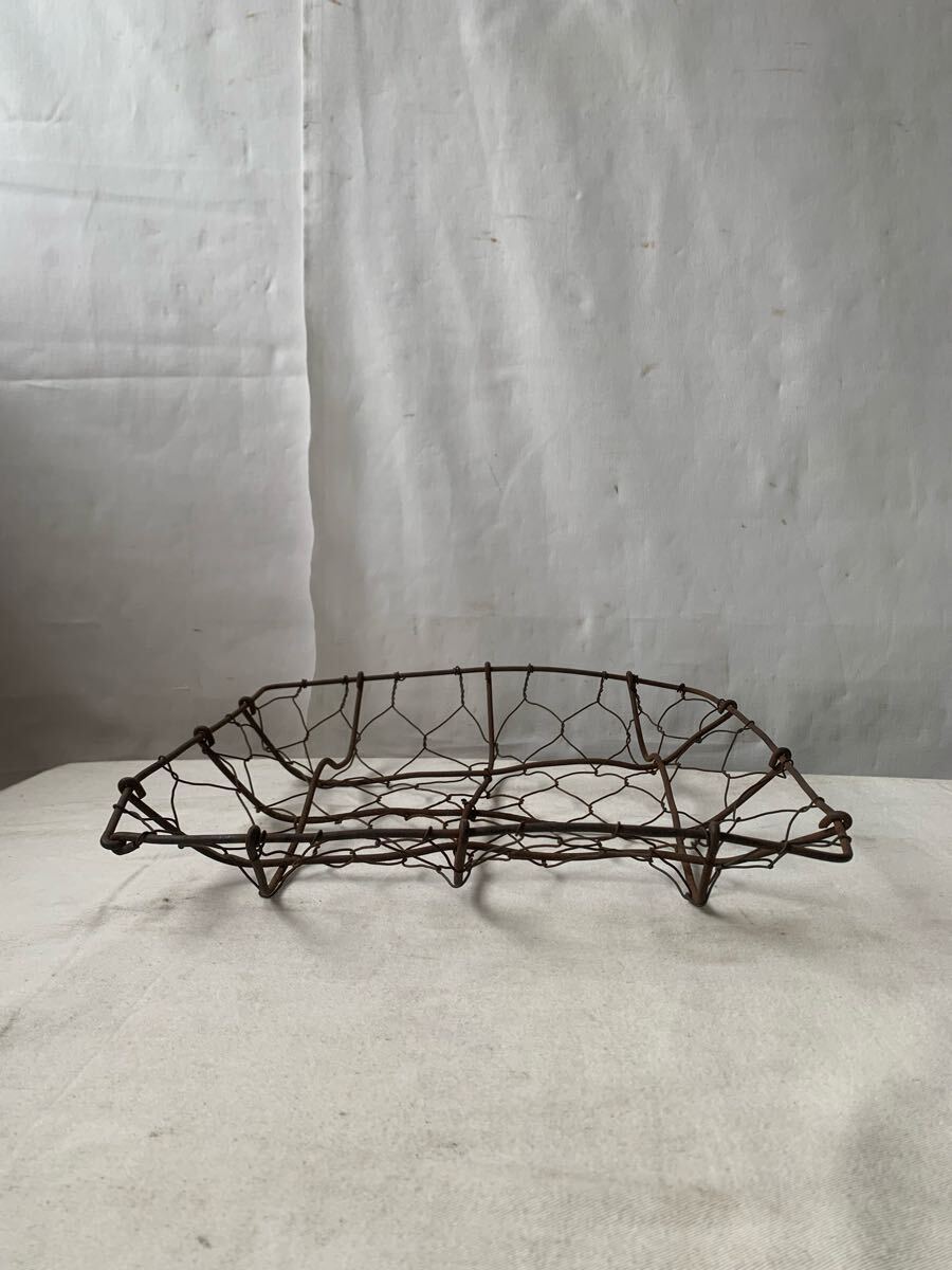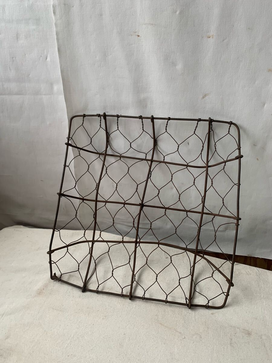 経年の雰囲気が素敵な四角いメッシュカゴです。雑誌や小物などの収納に、また中に植物などを入れたり、壁に掛けても素敵だと思います。