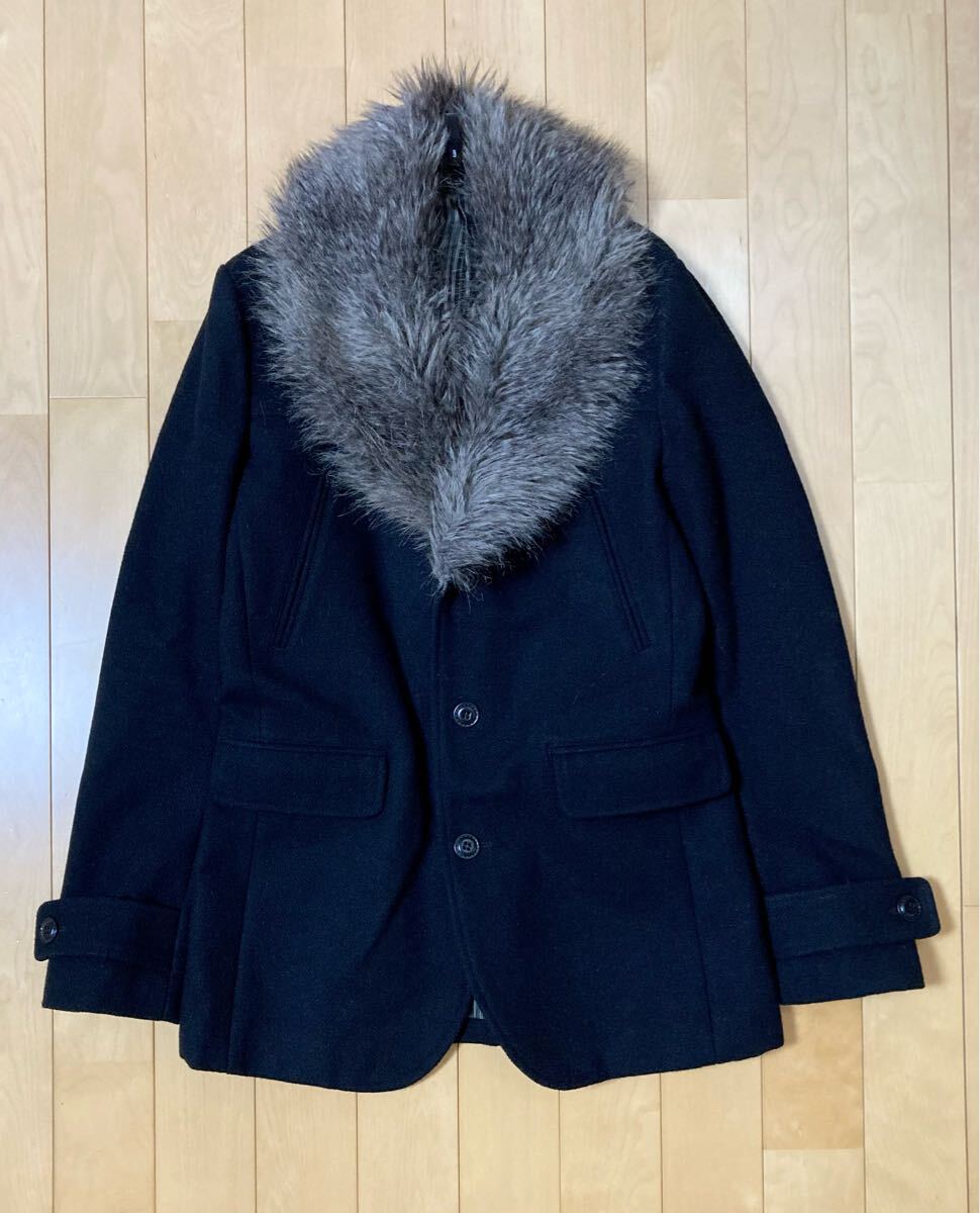 美品☆[THEE OLD CIRCUS] 2316 襟ファー ウールコート ロングジャケット 2 ブラック 日本製 オールドサーカス