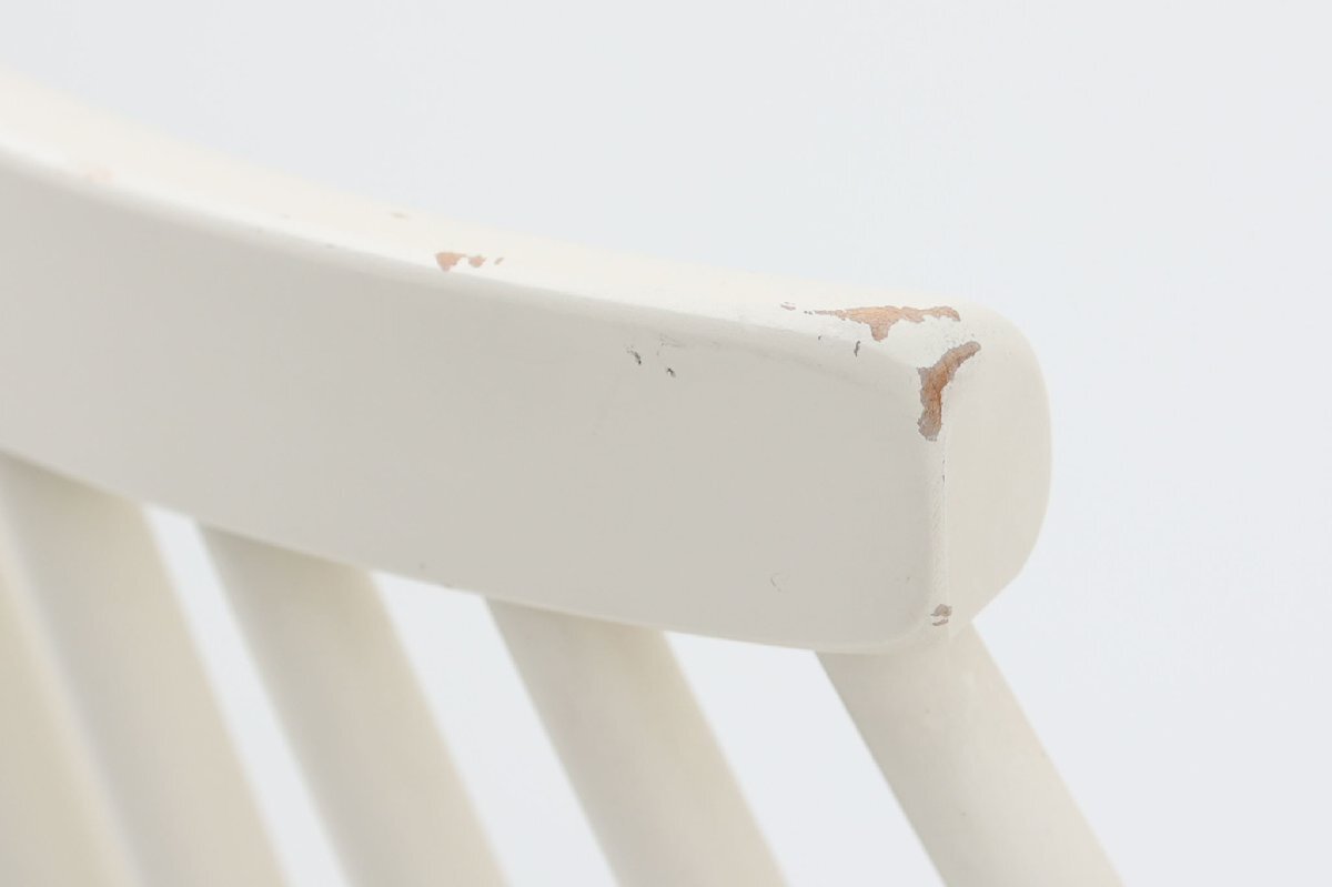 コンディション | 木部に傷、塗装の剥げが見受けられます。使用に問題のあるダメージも無く、ビンテージ品ならではの味わい深い風合いとしてお楽しみいただけます。 ※ビンテージ品です。お伝えしきれない細かい傷や使用感等が御座います。ご了承下さいませ。 「メンテナンス内容」 クリーニング済みです。完全に防げる訳ではありませんが、背面内側と座面は塗装が服などに付着しにくい様ラッカー塗装を施しています。 |