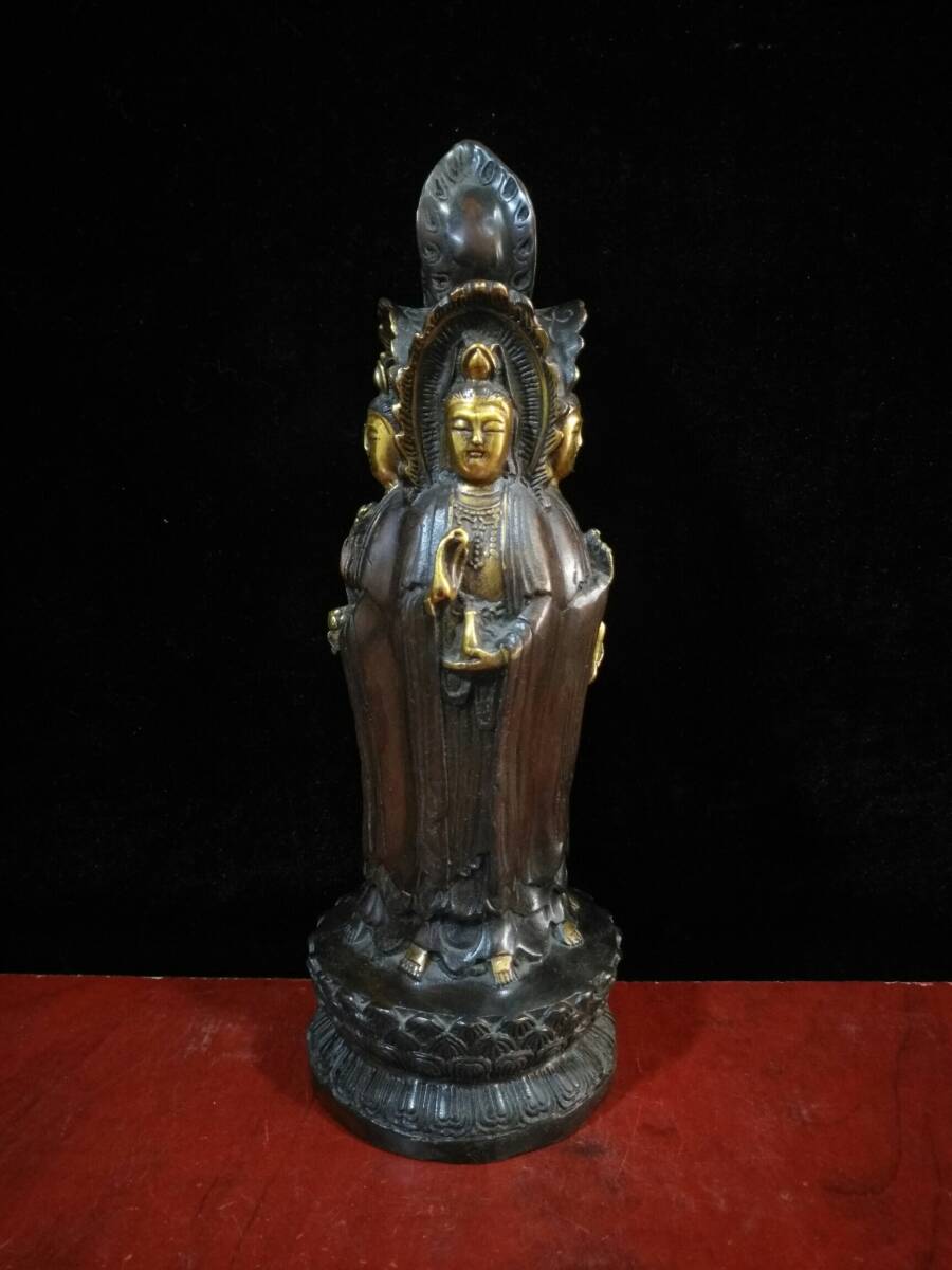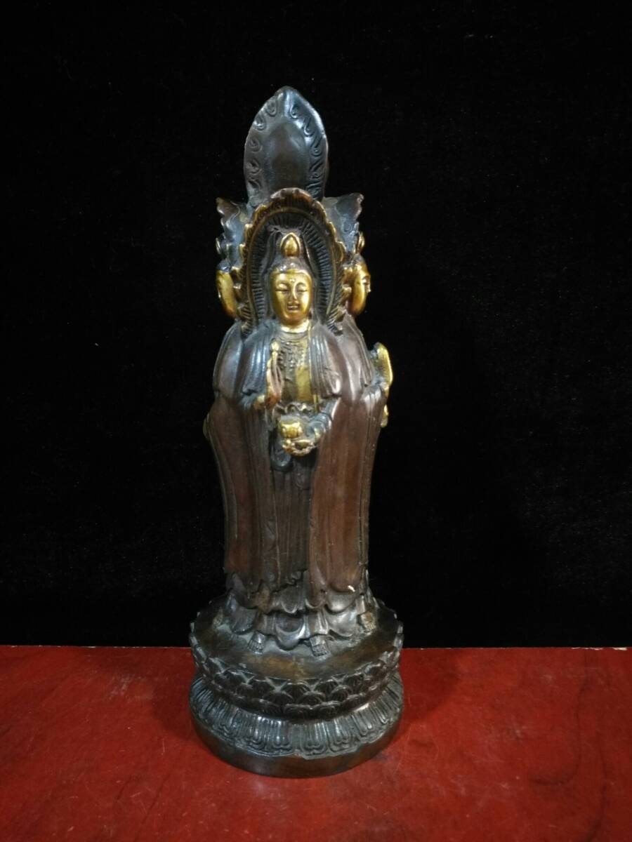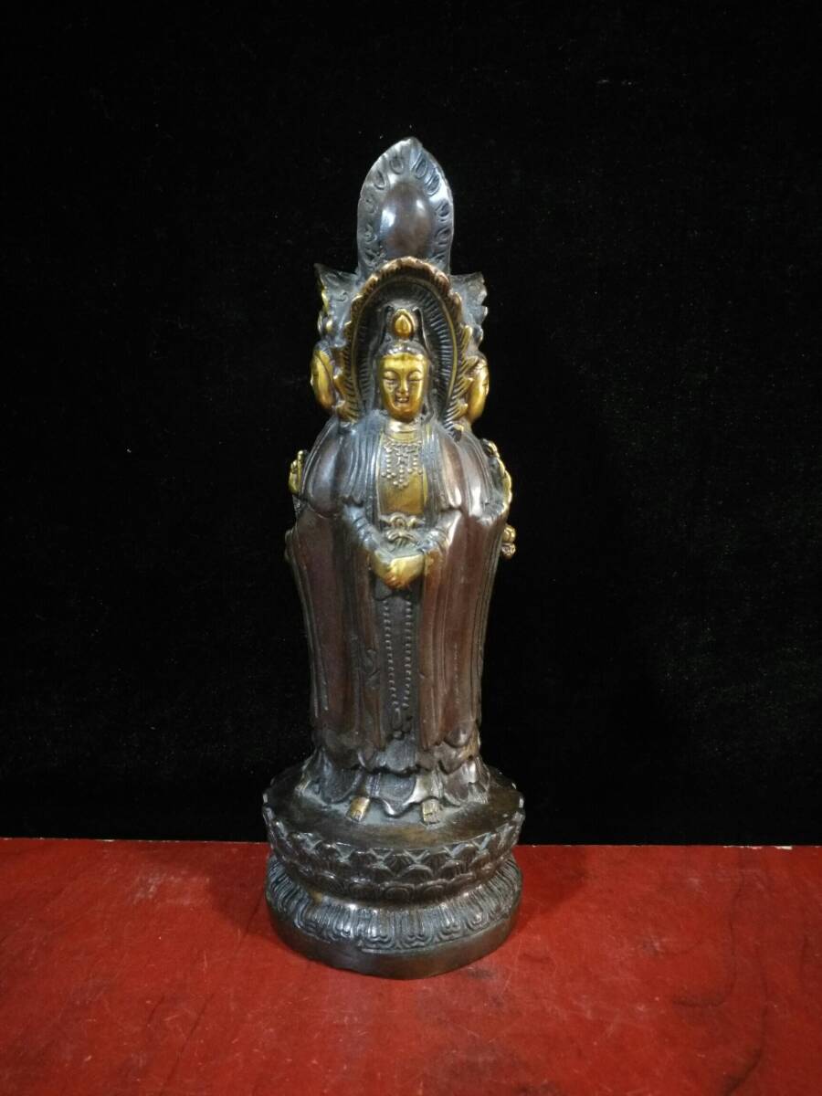 | 【蔵友館蔵品・銅製・塗金・四面觀音菩薩像】・希少珍品・置物・賞物・中国時代美術 |