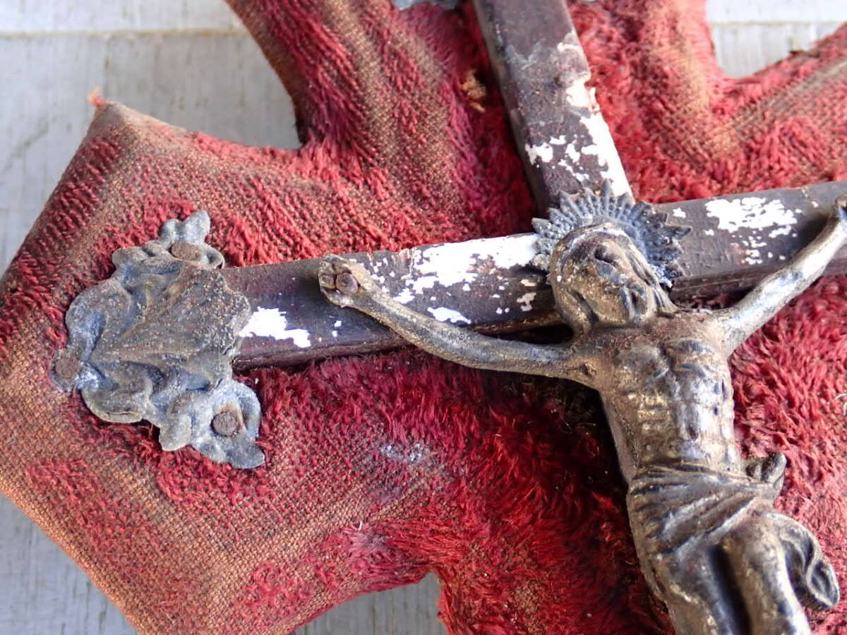 jadisフランスアンティーク ベネティエ 十字架 クロス 壁掛け ウォール デコ キリスト 教会 装飾 木製 古木 蚤の市 ブロカント 1880年