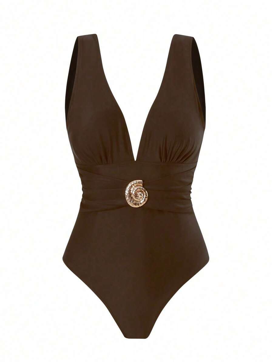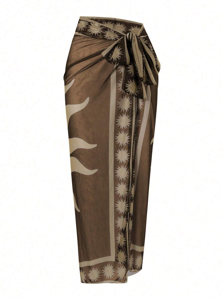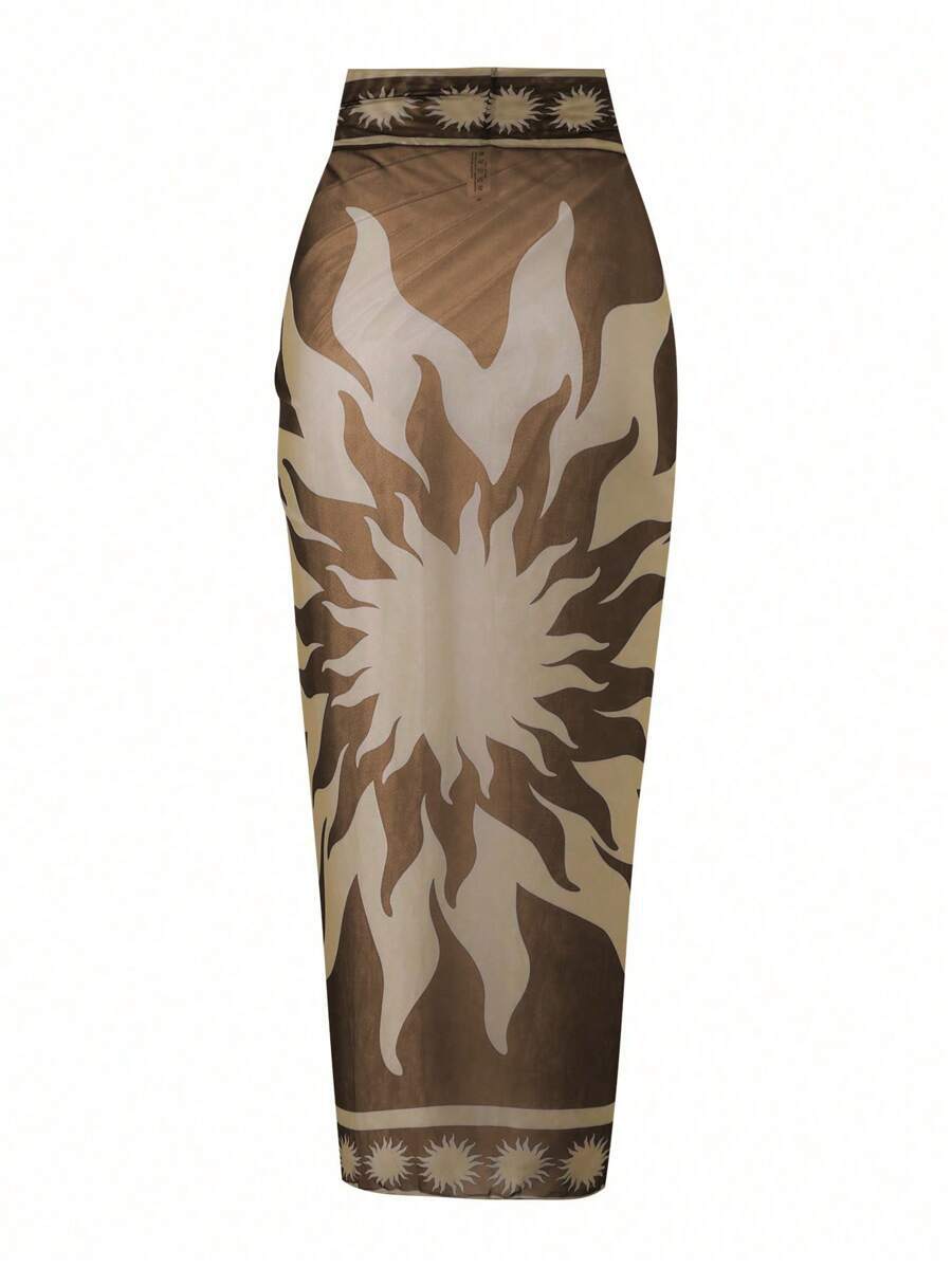 レディース 水着 ワンピース 2点セット レディースソリッドブラウン水着、メッシュプリントビーチカバーアップドレス、リゾートカジュ