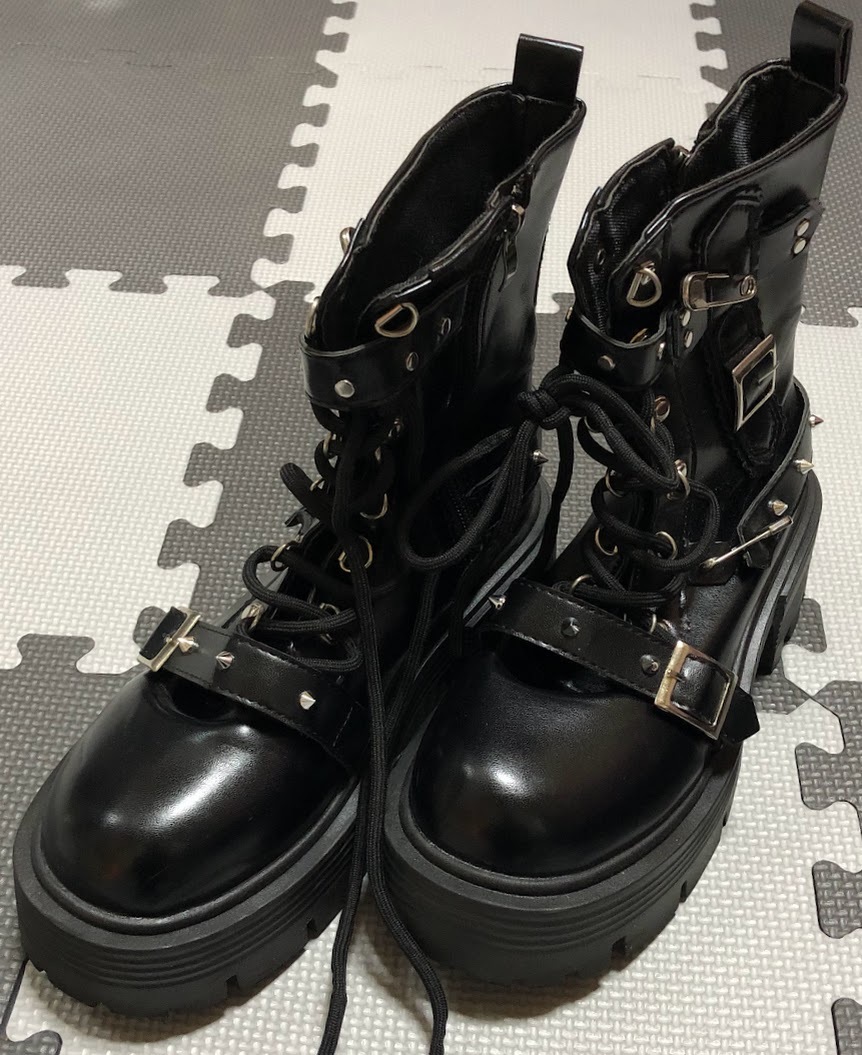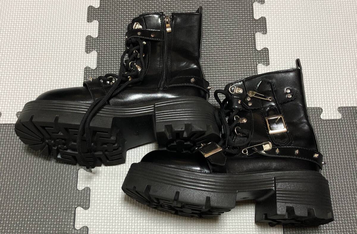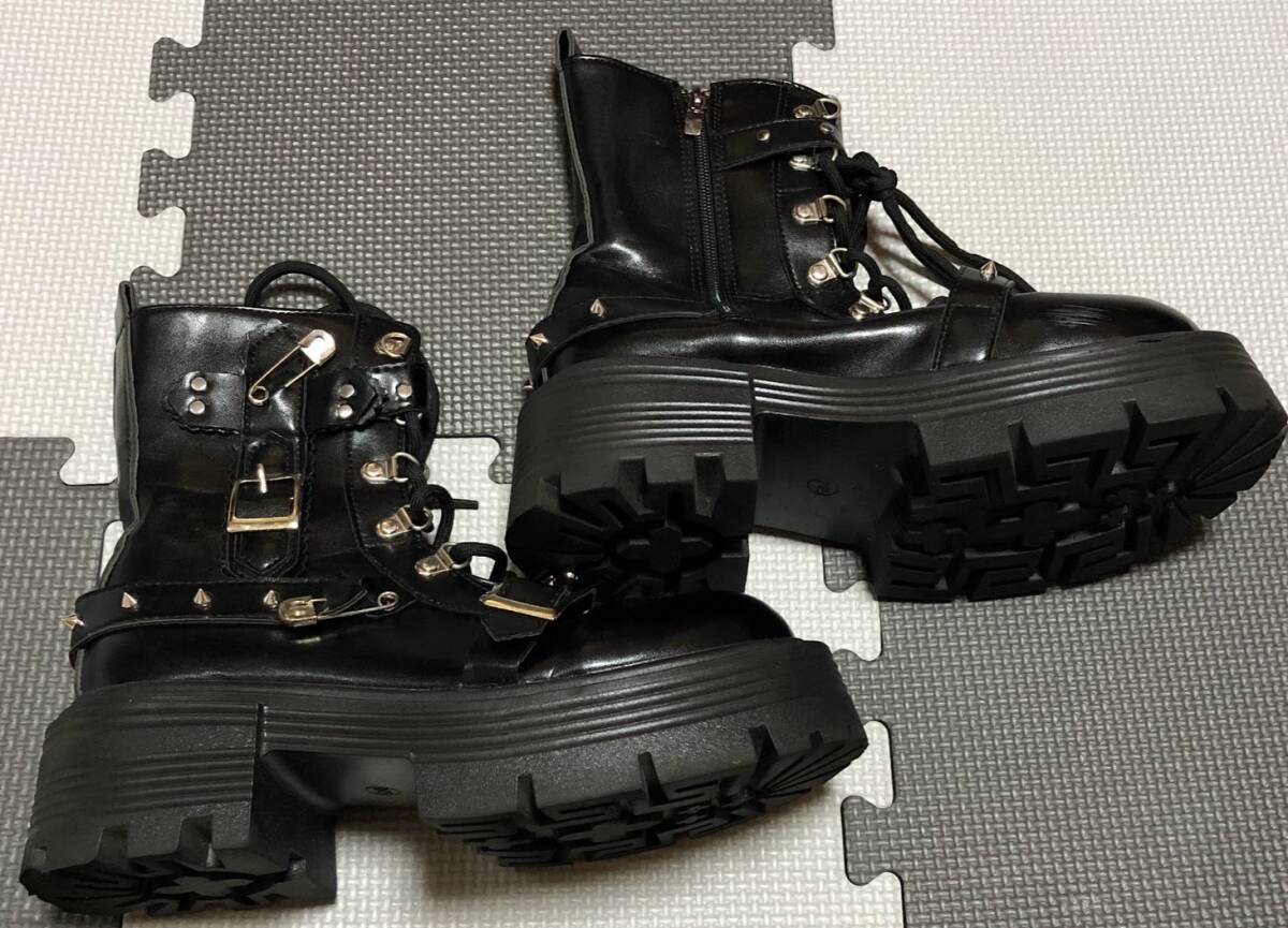レディース ブーツ ショートブーツ 24.5cm パンクレースアップショートブーツ