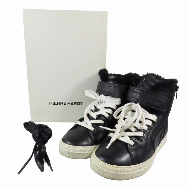 ピエールアルディ PIERRE HARDY ボア ハイカットスニーカー レースアップ レザー シューズ 36 黒 ブラック/1 レディース