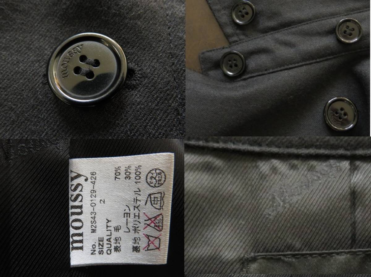 【MOUSSY】マウジーのロゴ刻印入りボタン、ロゴ刺繍入り高級総裏地。