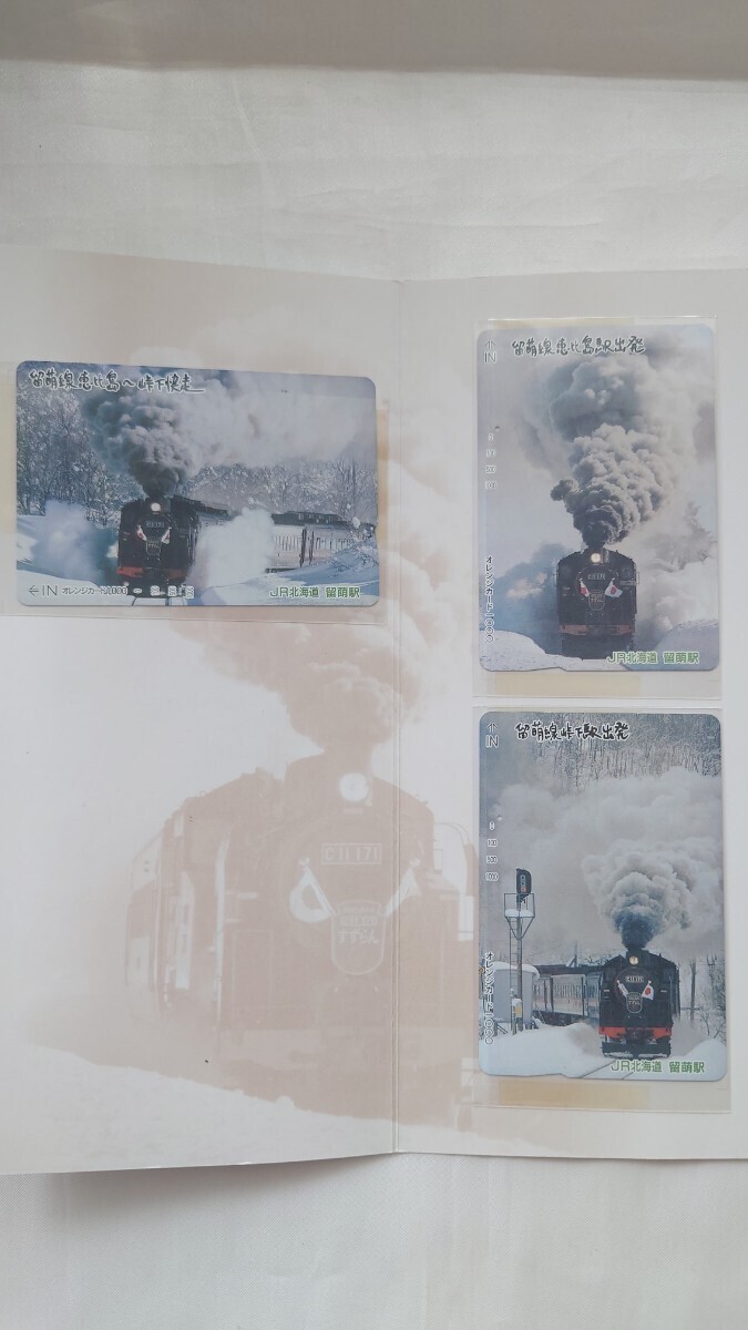 ●JR北海道●SLすずらん2000年新春を駆ける●記念オレンジカード1穴使用済み3枚組台紙付 C11 留萌本線