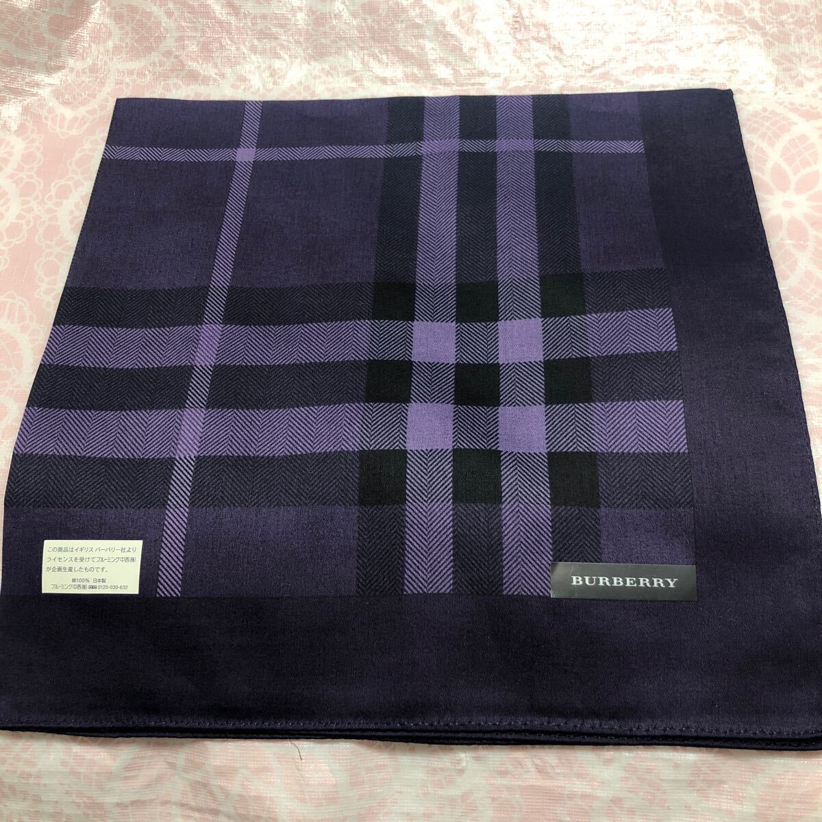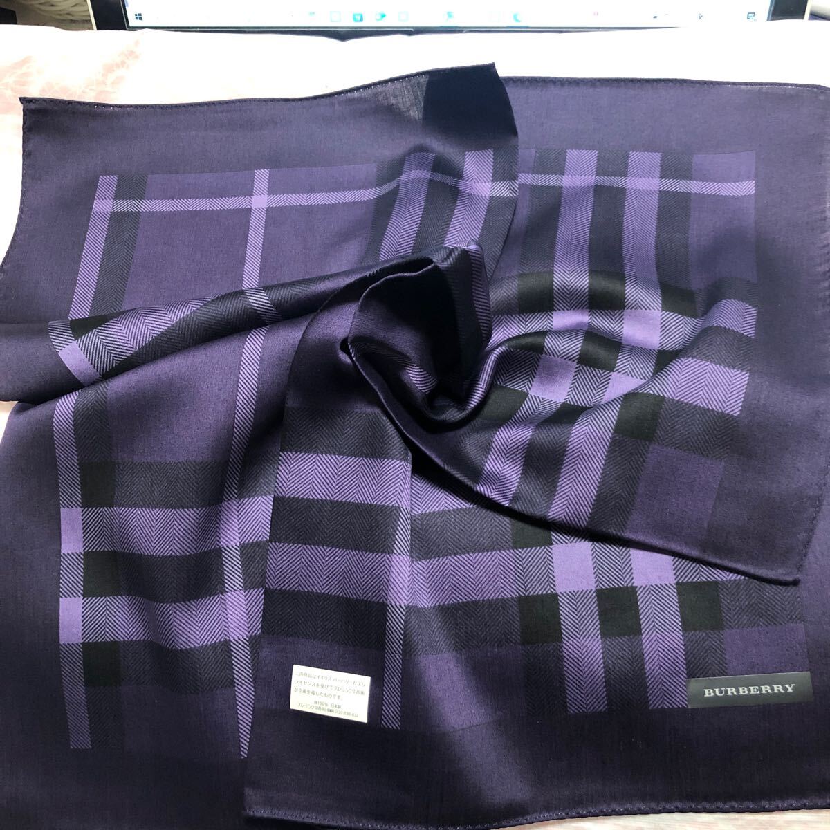 正規品 新品 バーバリー ハンカチ 大きめ53㎝ BURBERRY パープル系 未使用