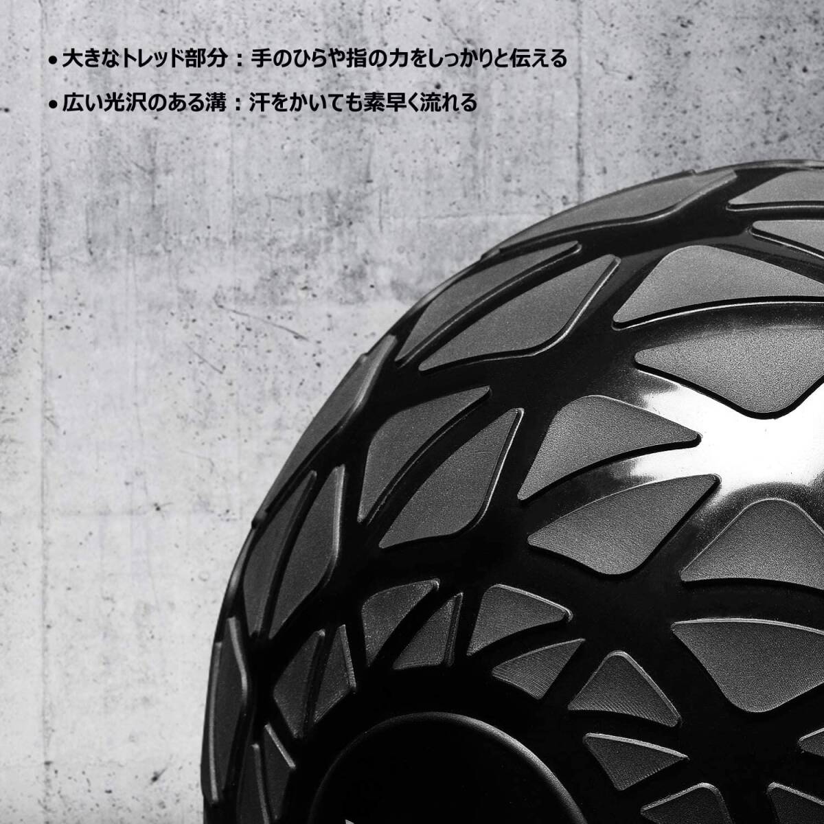 「グリップしやすい表面」汗をかいてもメディシンボールを握りやすいように、溝とテクスチャーを施したPVCシェルを採用します。スタイリッシュな見た目でインテリアにも馴染みそうなハードタイプのウェイトボールです。叩きつけてもバウンドしないのが特徴で,両手で持つウエイトトレーニングに適しています。