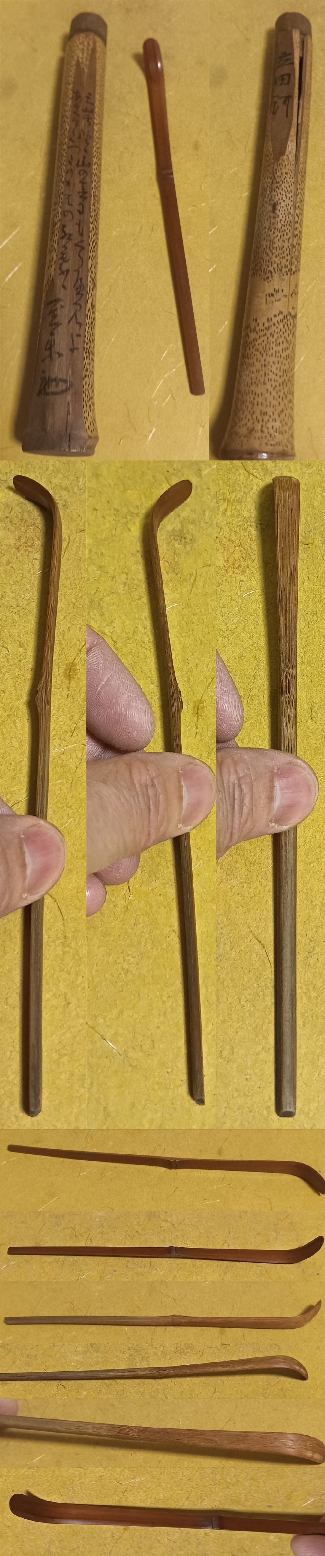 江戸時代 班竹 煤竹 茶杓  識補筒 花押 茶道具