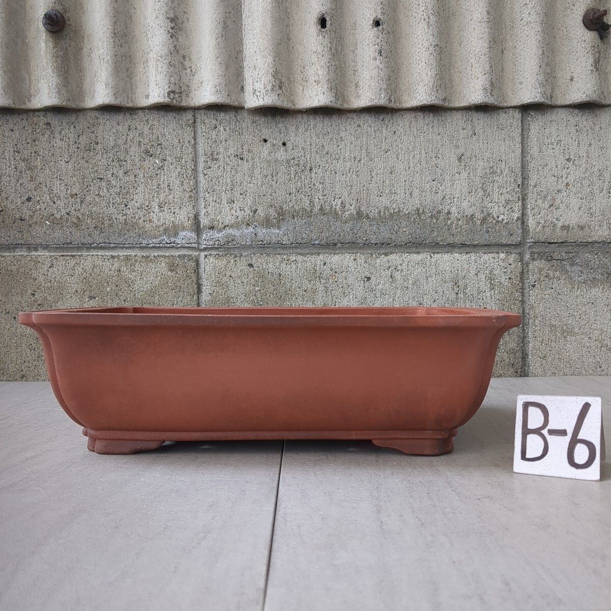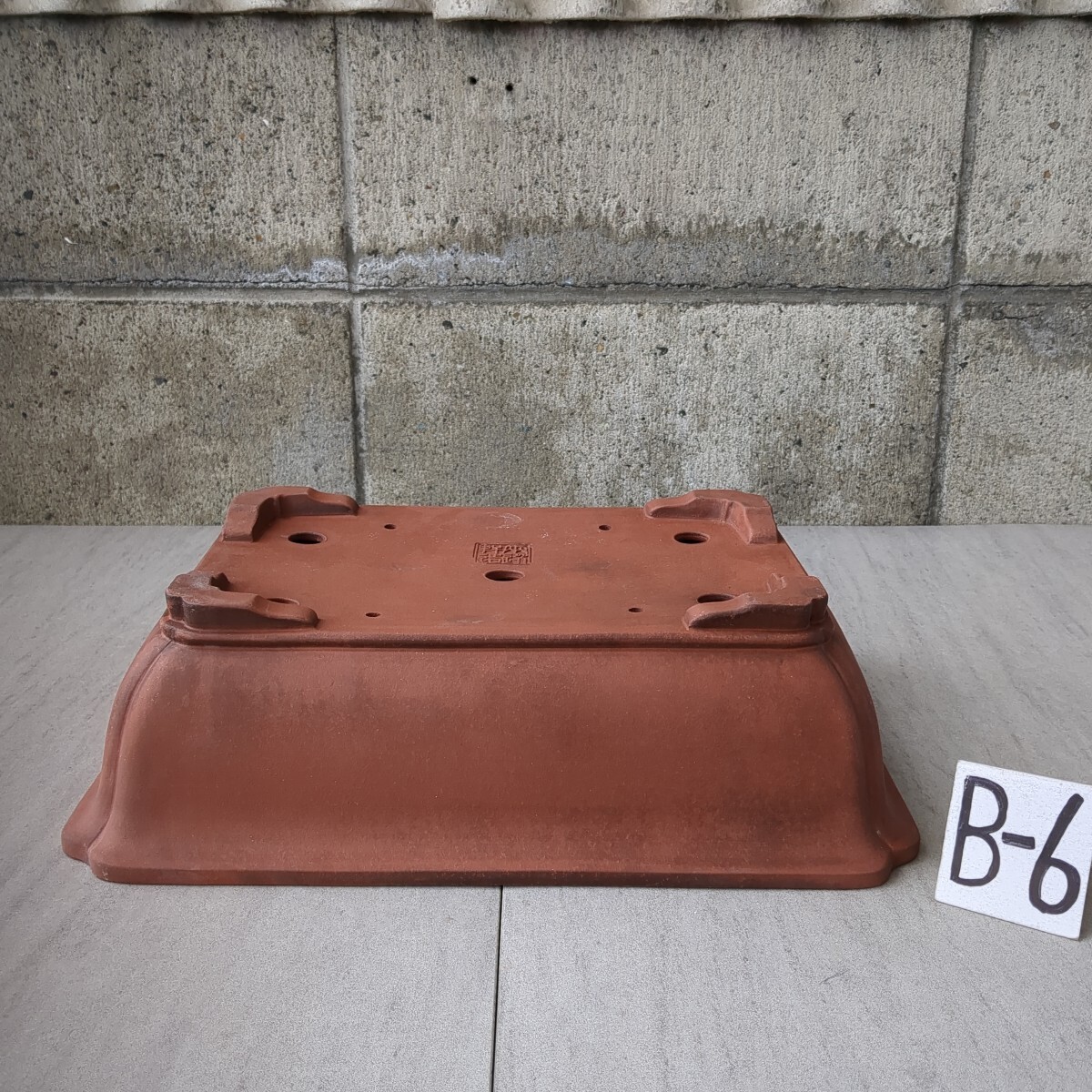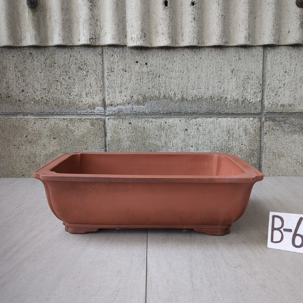 中国盆栽鉢      長方外縁隅入下帯      紅泥    11号 / 33,5cm      中古    B-⑥