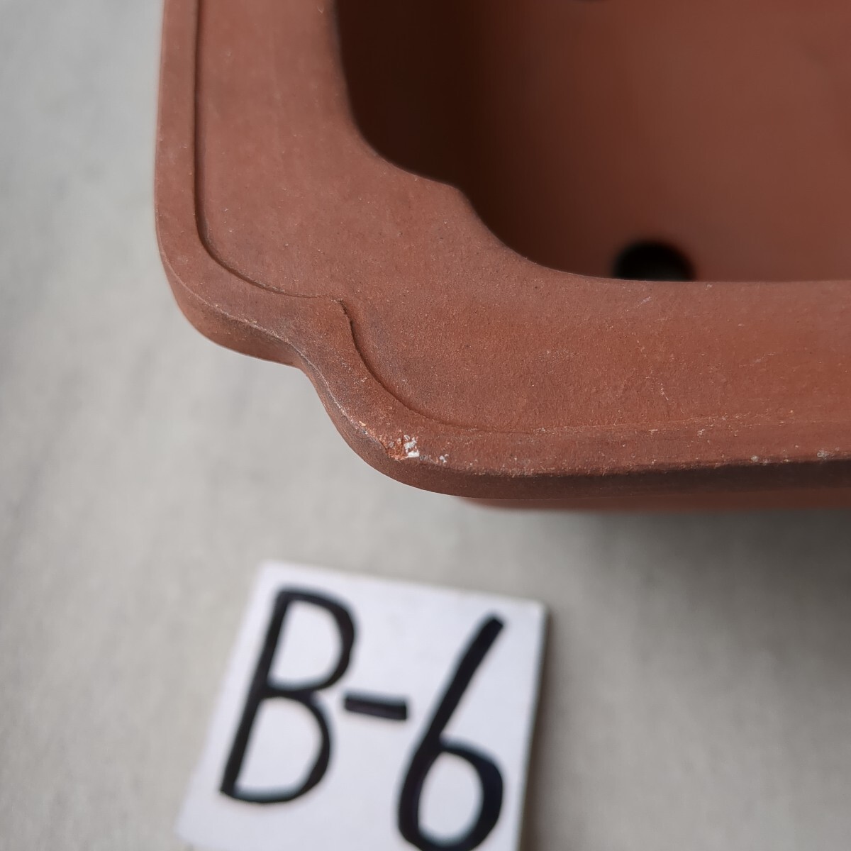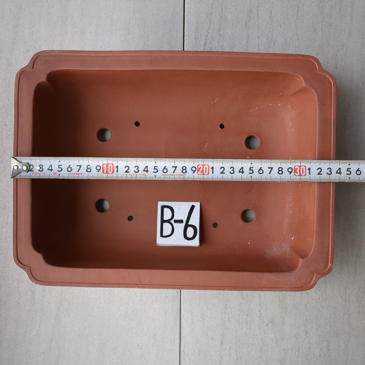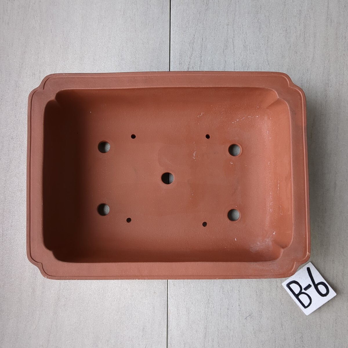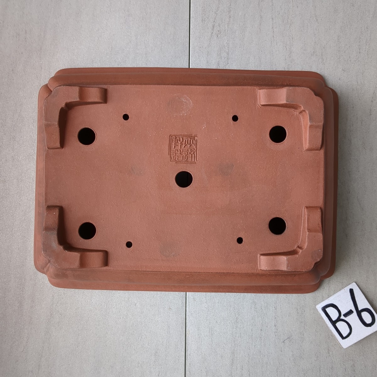 中国盆栽鉢      長方外縁隅入下帯      紅泥    11号 / 33,5cm      中古    B-⑥