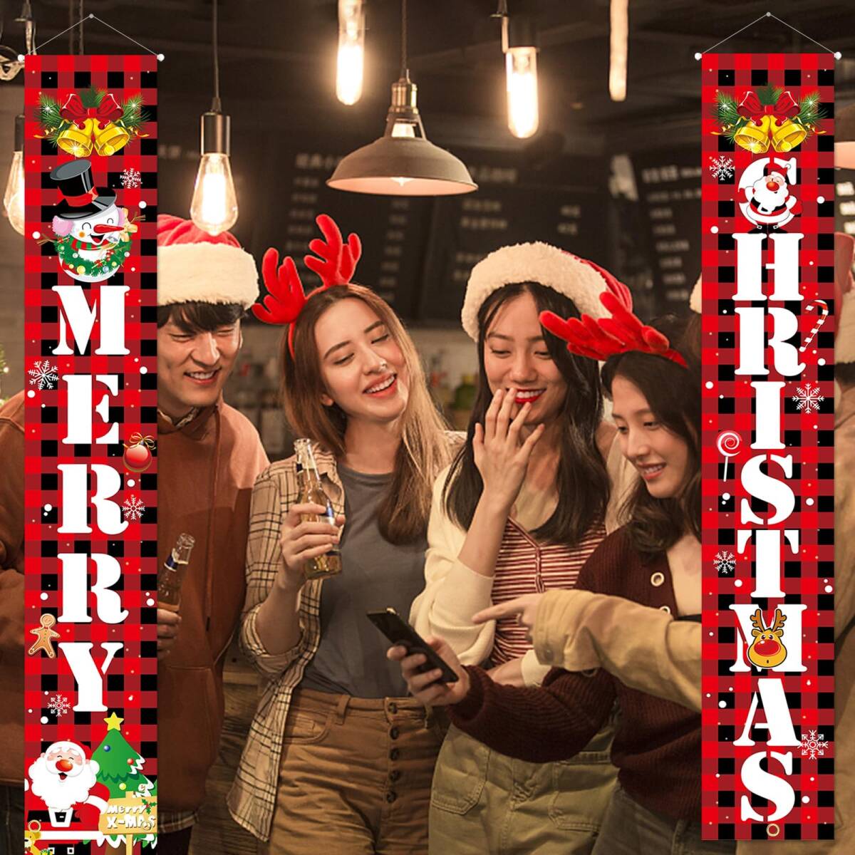 クリスマス玄関飾り:大きな文字「MERRY CHRISTMAS」がプリントされ、クリスマスをテーマにした玄関飾りです。壁に掛けるだけで、ぱっとクリスマスの雰囲気を素敵に演出してくれます。目を引くクリスマスポスターを飾り、楽しいクリスマスと新年を迎えましょう!