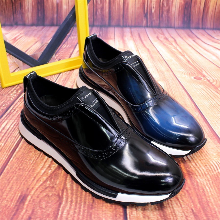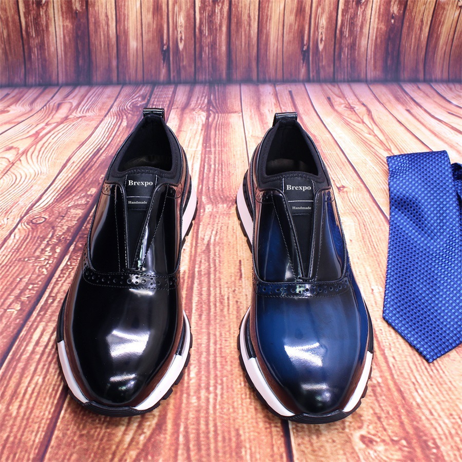 新品レザーシューズ 職人手作り 最高級 ビジネスシューズ 彫り 本牛革 スリッポン ローファー 革靴 紳士靴 ブルー 28.5cmサイズ選択可