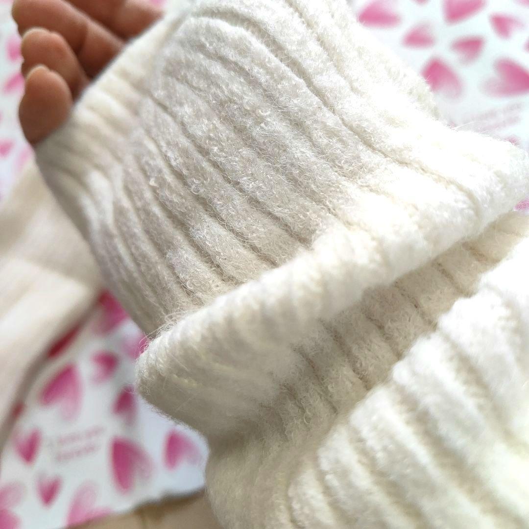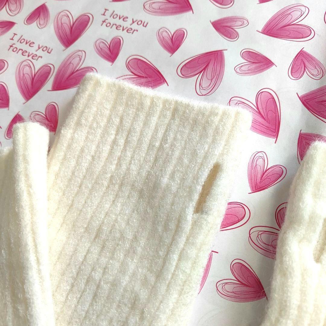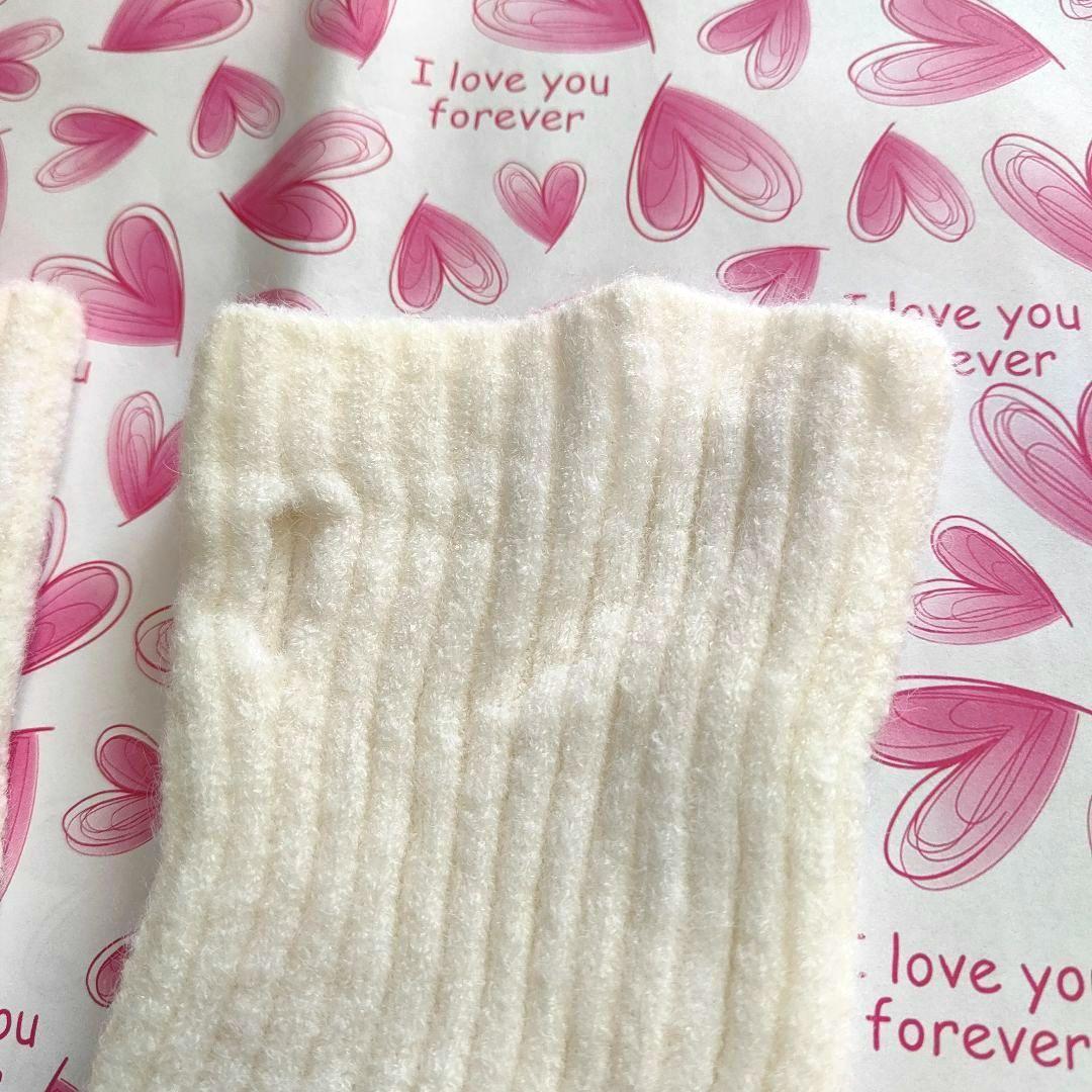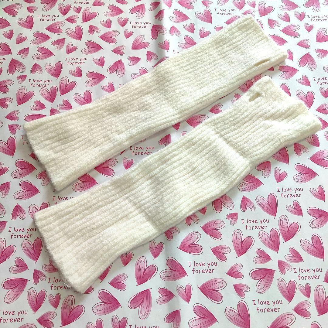 ニット アームウォーマー ホワイト 指穴が可愛い ふわふわ