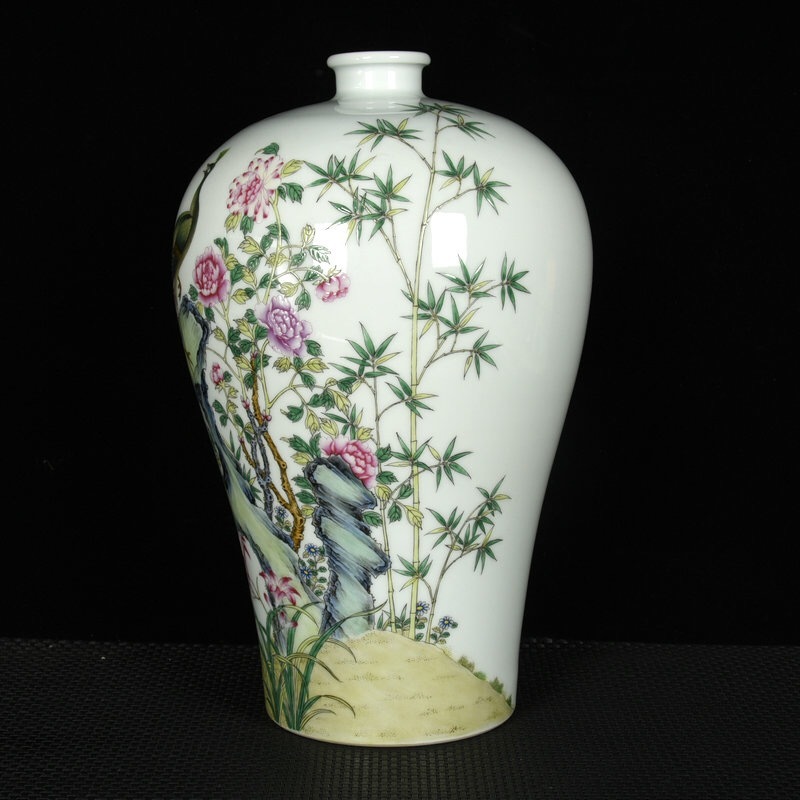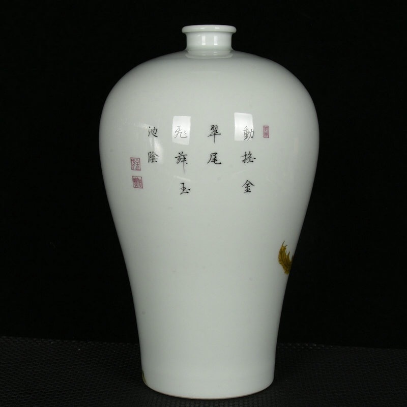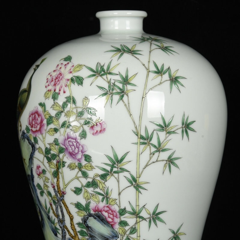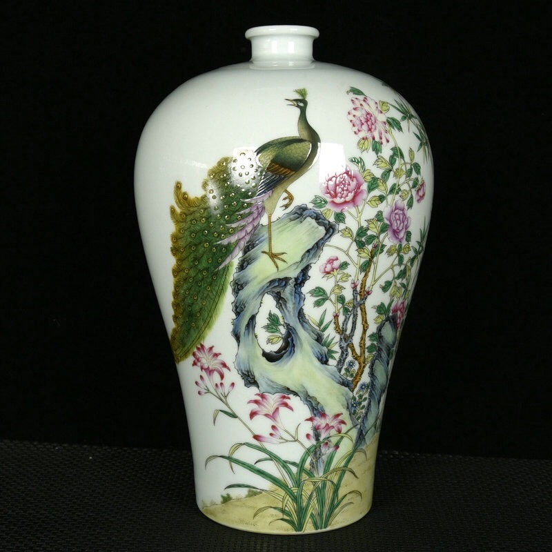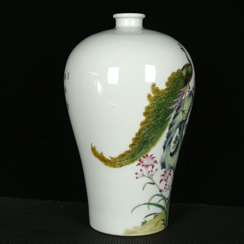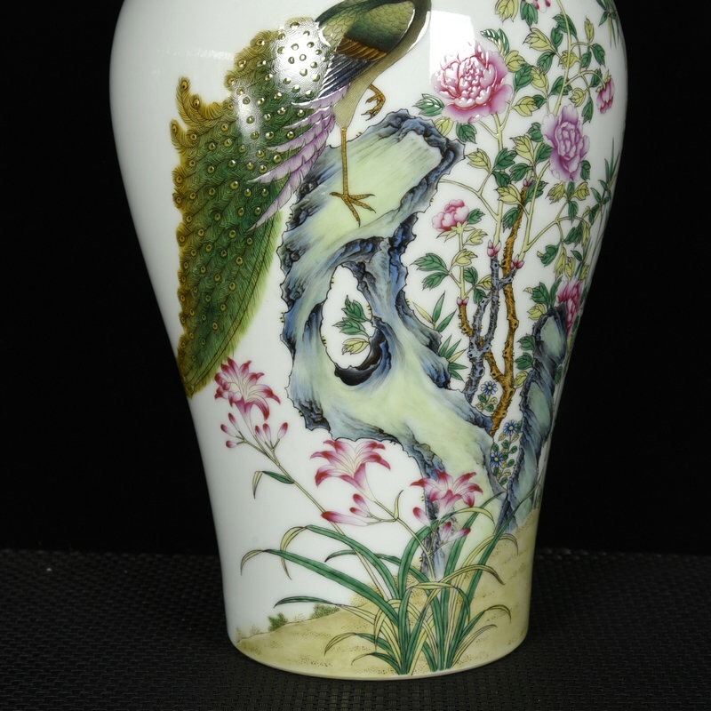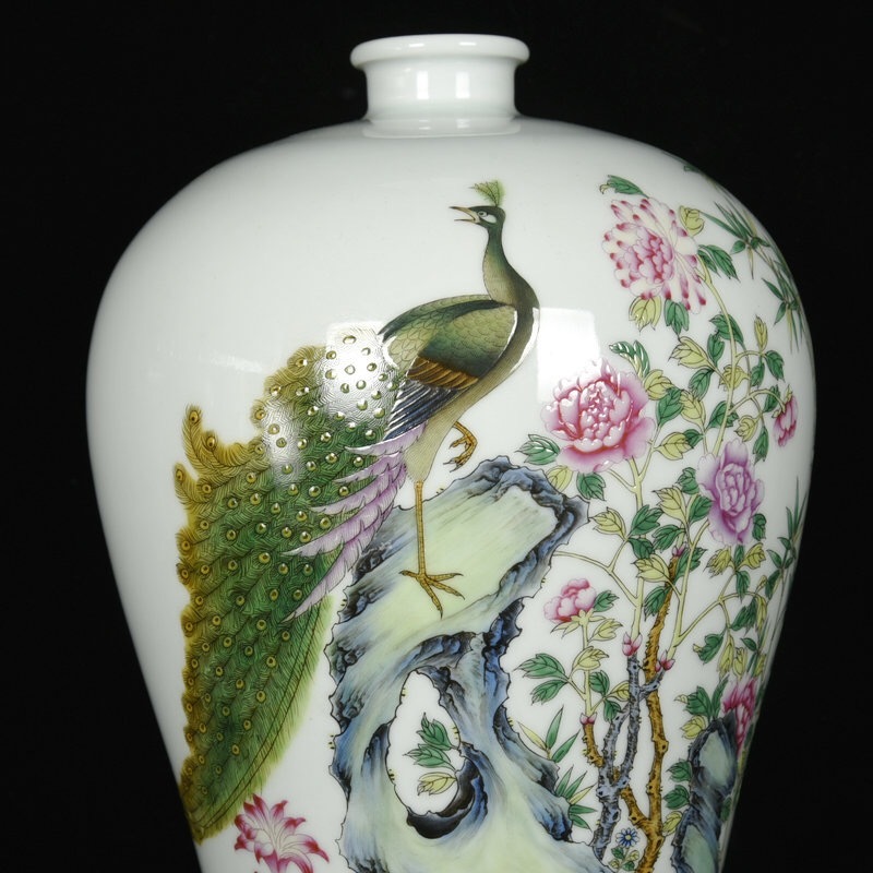 【古寶奇蔵】清・雍正年製款・古陶瓷品・琺瑯彩・描金・孔雀牡丹紋・梅瓶・置物・賞物・中国時代美術 |