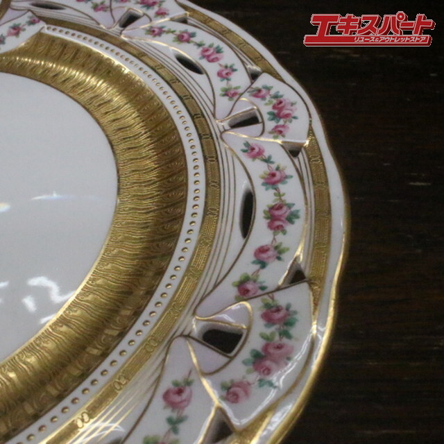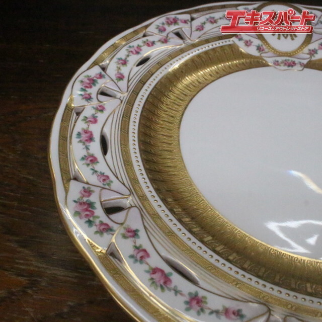 直径約27.8cmで、たっぷりした金彩とバラのハンドペイントが鮮やかなお品物です。
