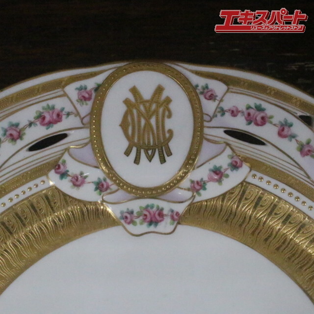 極美品 1890年頃 ミントン Minton 金彩 特注 27cm 金彩薔薇 絵皿 キャビネットプレート アンティーク コロモア 辻堂店