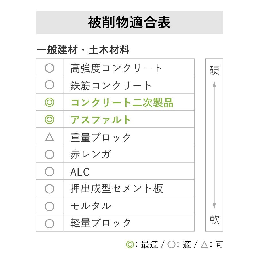 コンクリート二次製品、石材、モルタル、レンガ、瓦礫の切断に。
