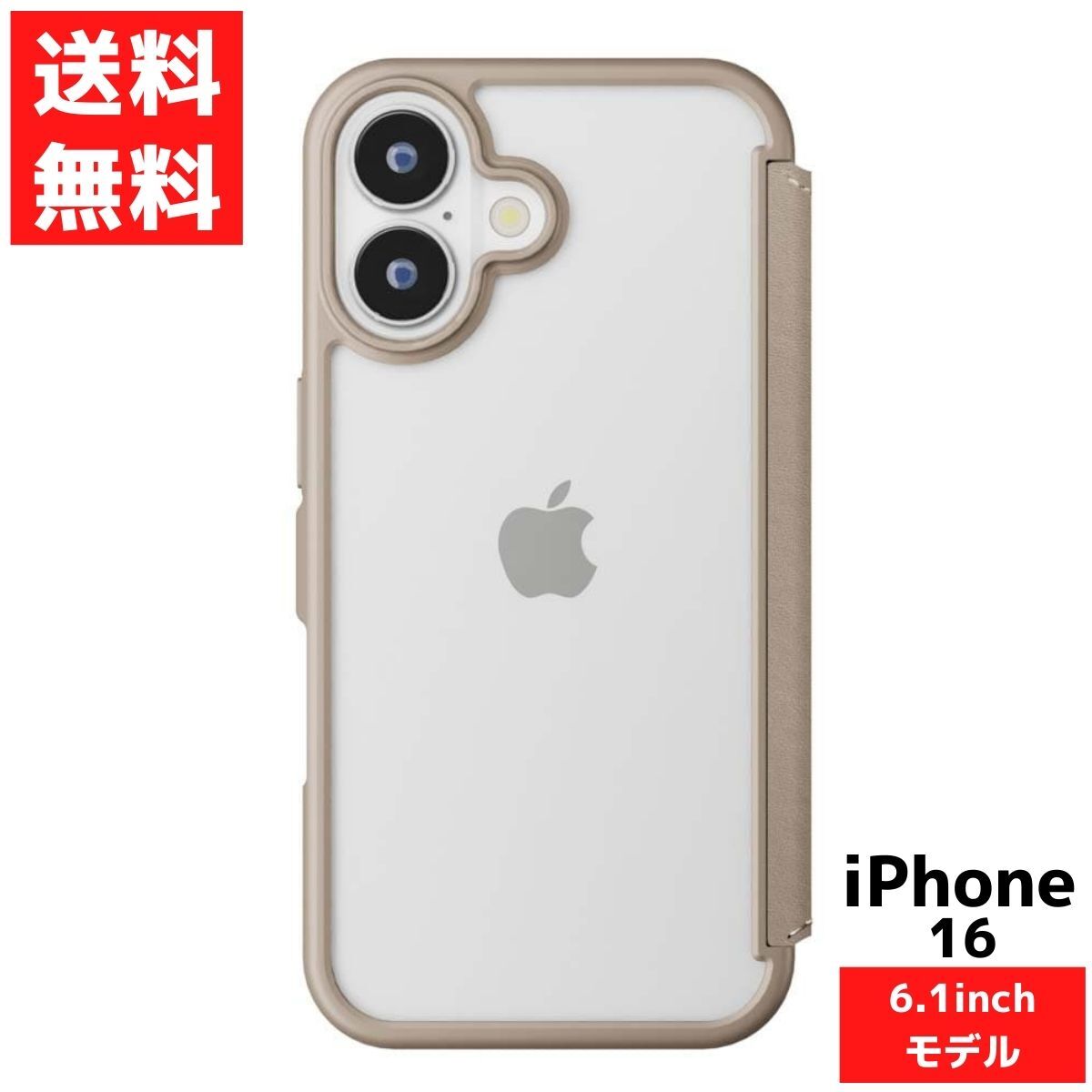 iPhone 16用 ガラスフリップケース ベージュ 手帳型 ケース アイフォン スマホ カバー スタンド機能