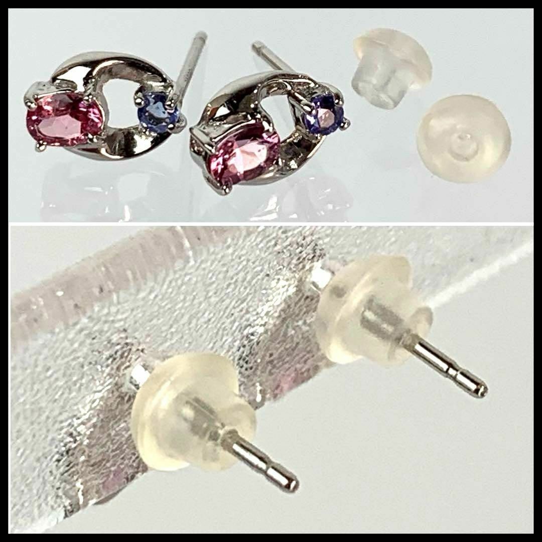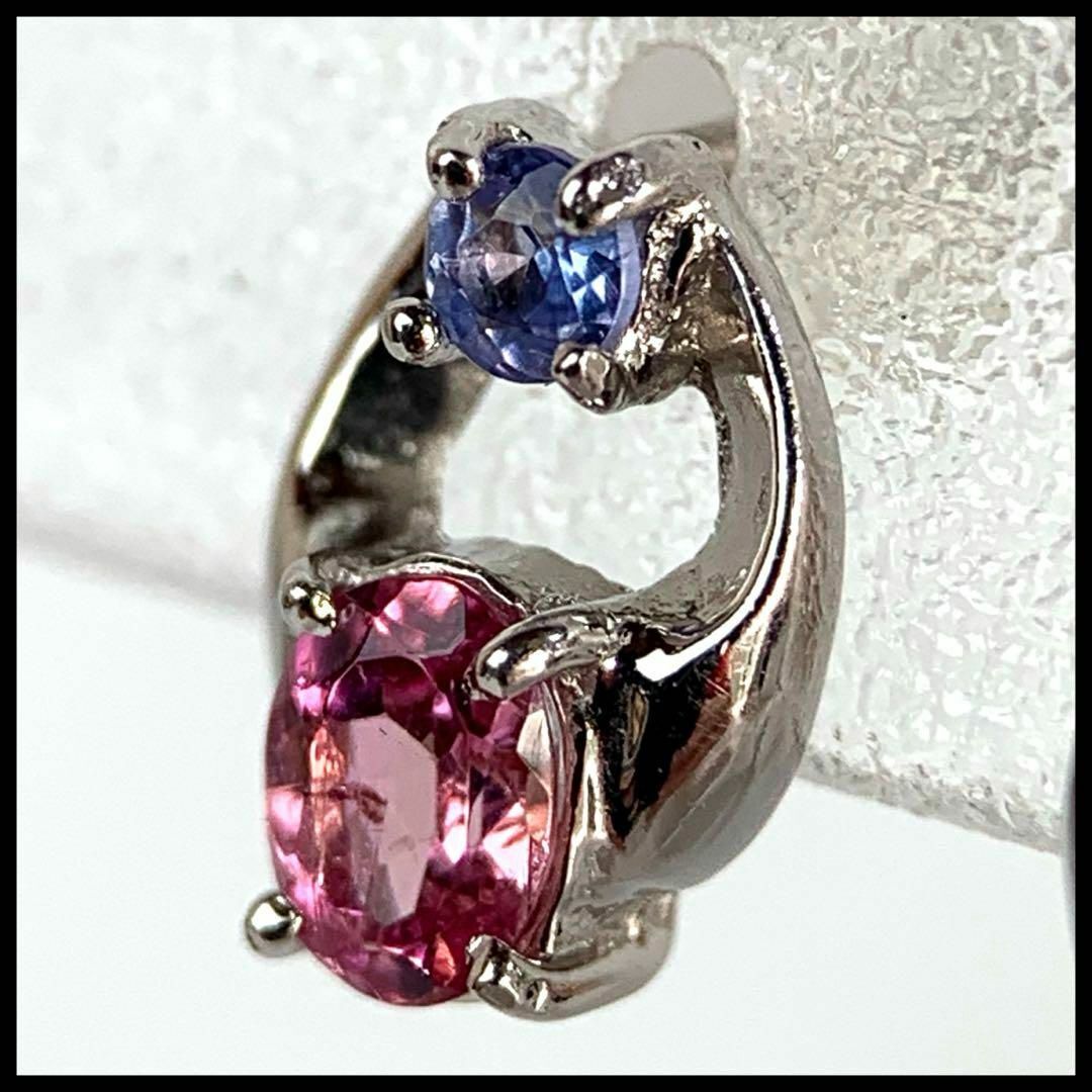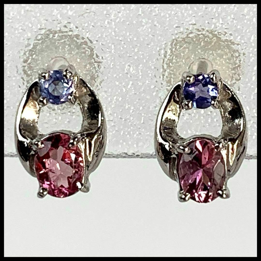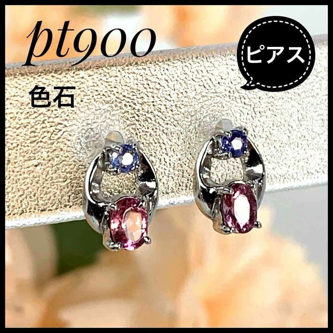 ピンクとブルーの色石が可愛いプラチナ900のピアスです♪