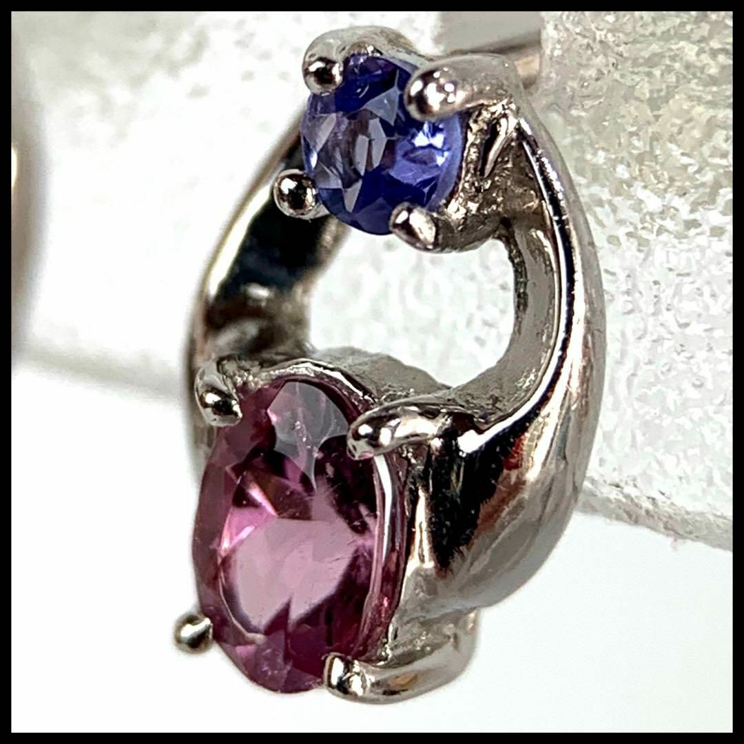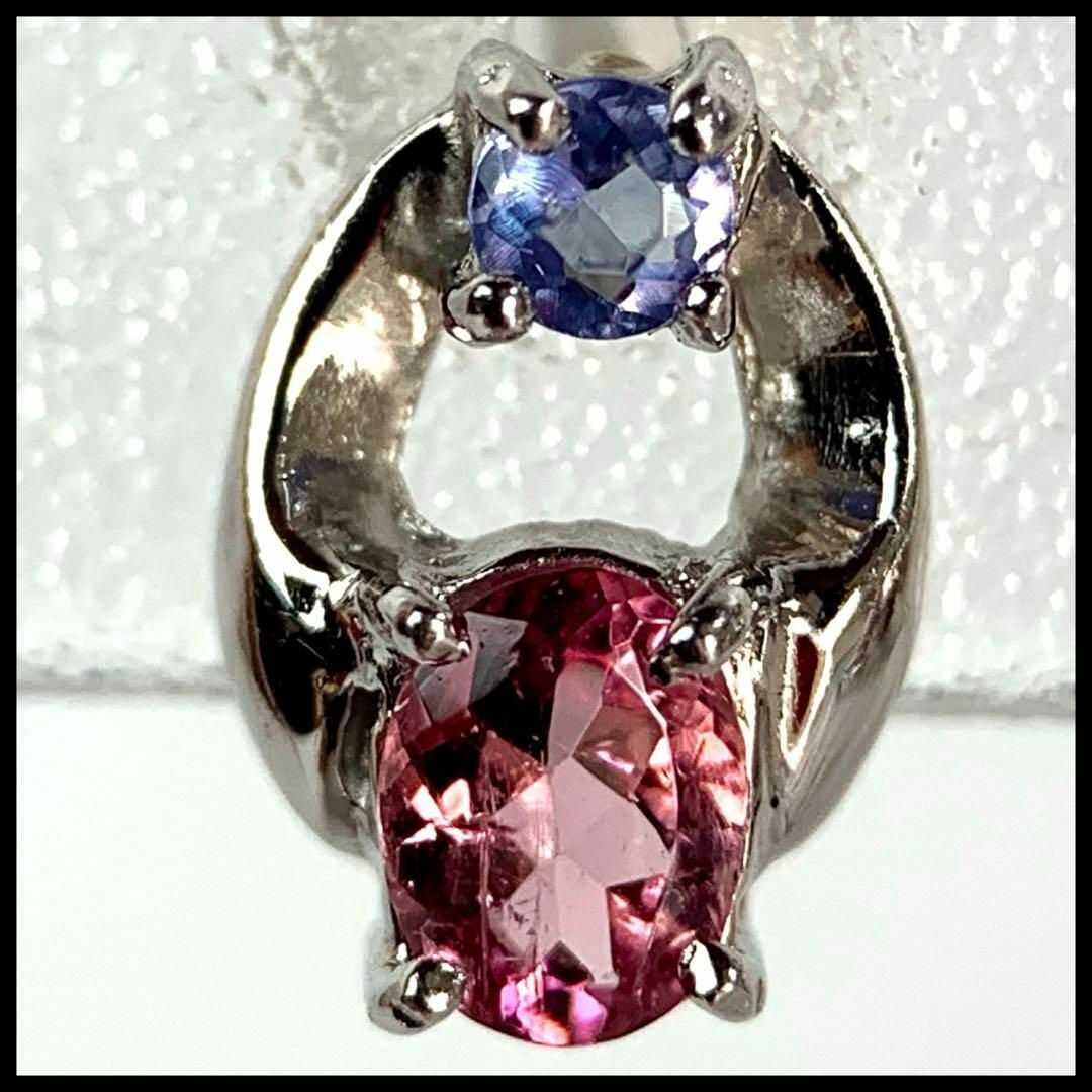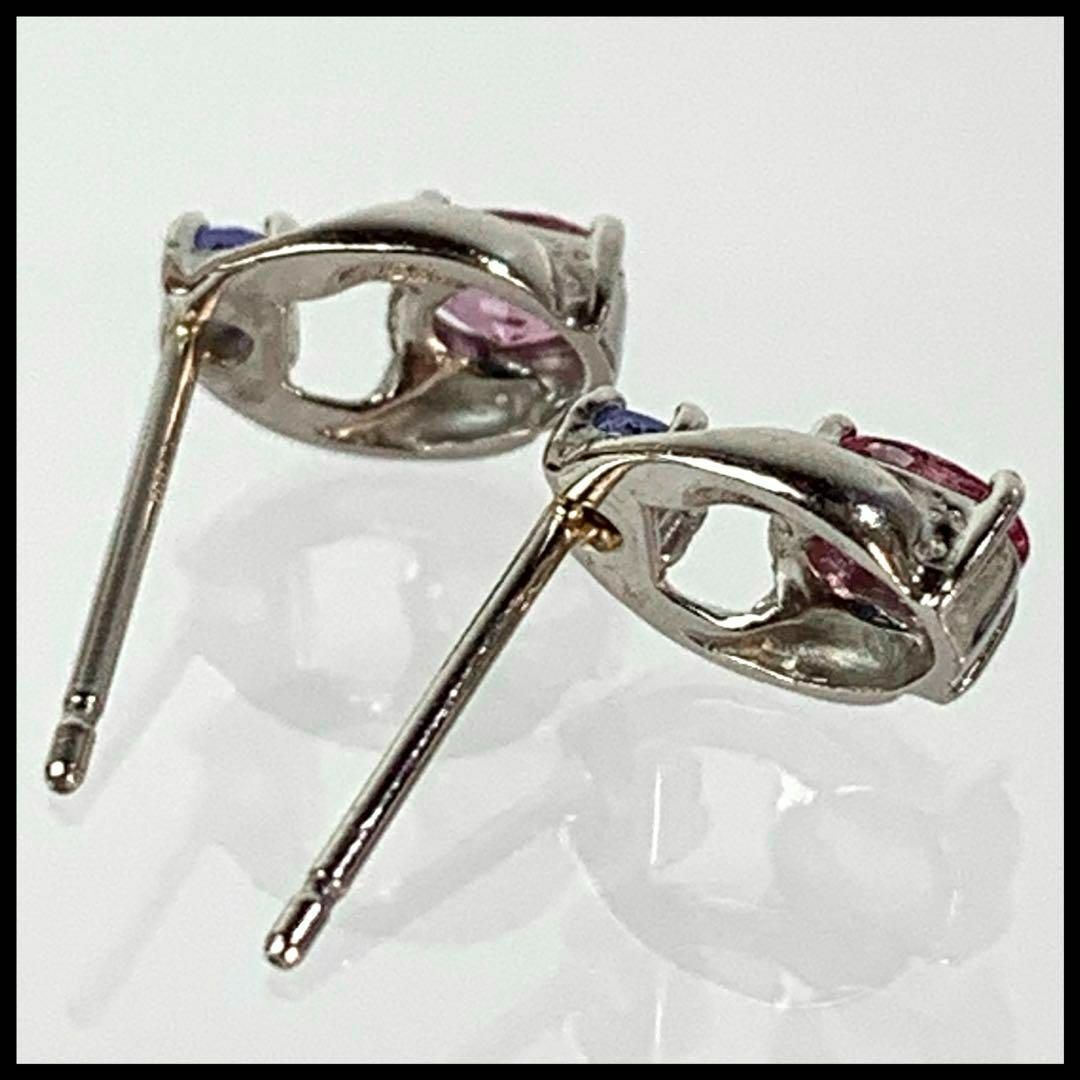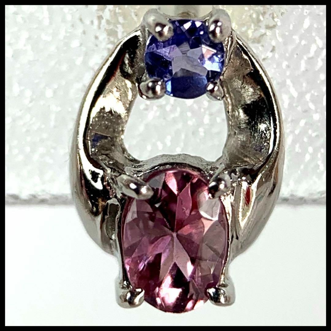 ピンクとブルーの色石が可愛いプラチナ900のピアスです♪