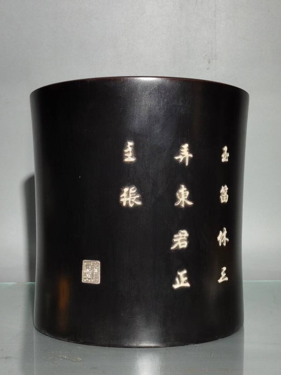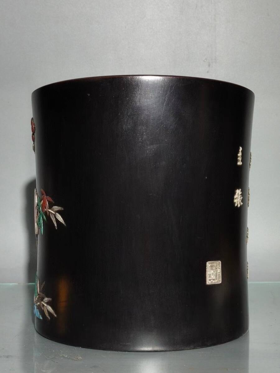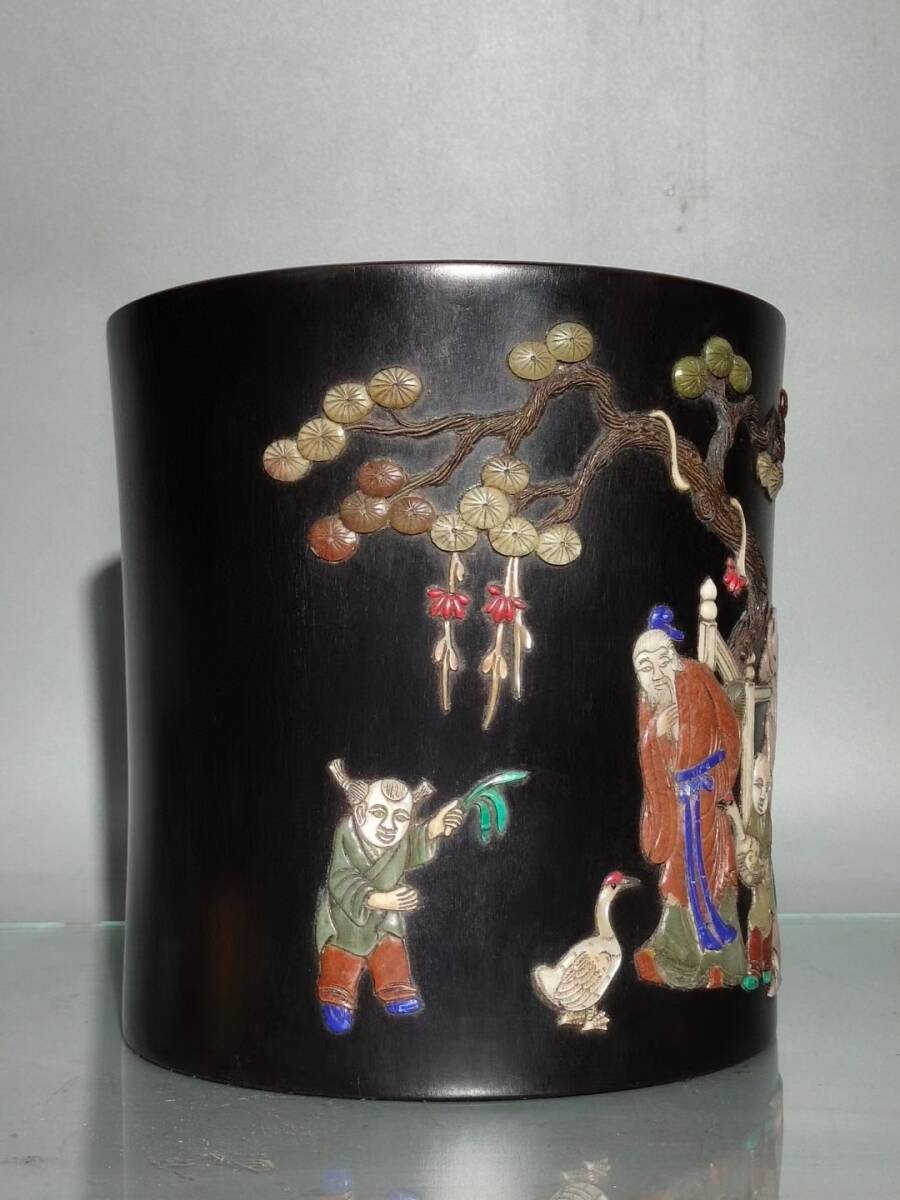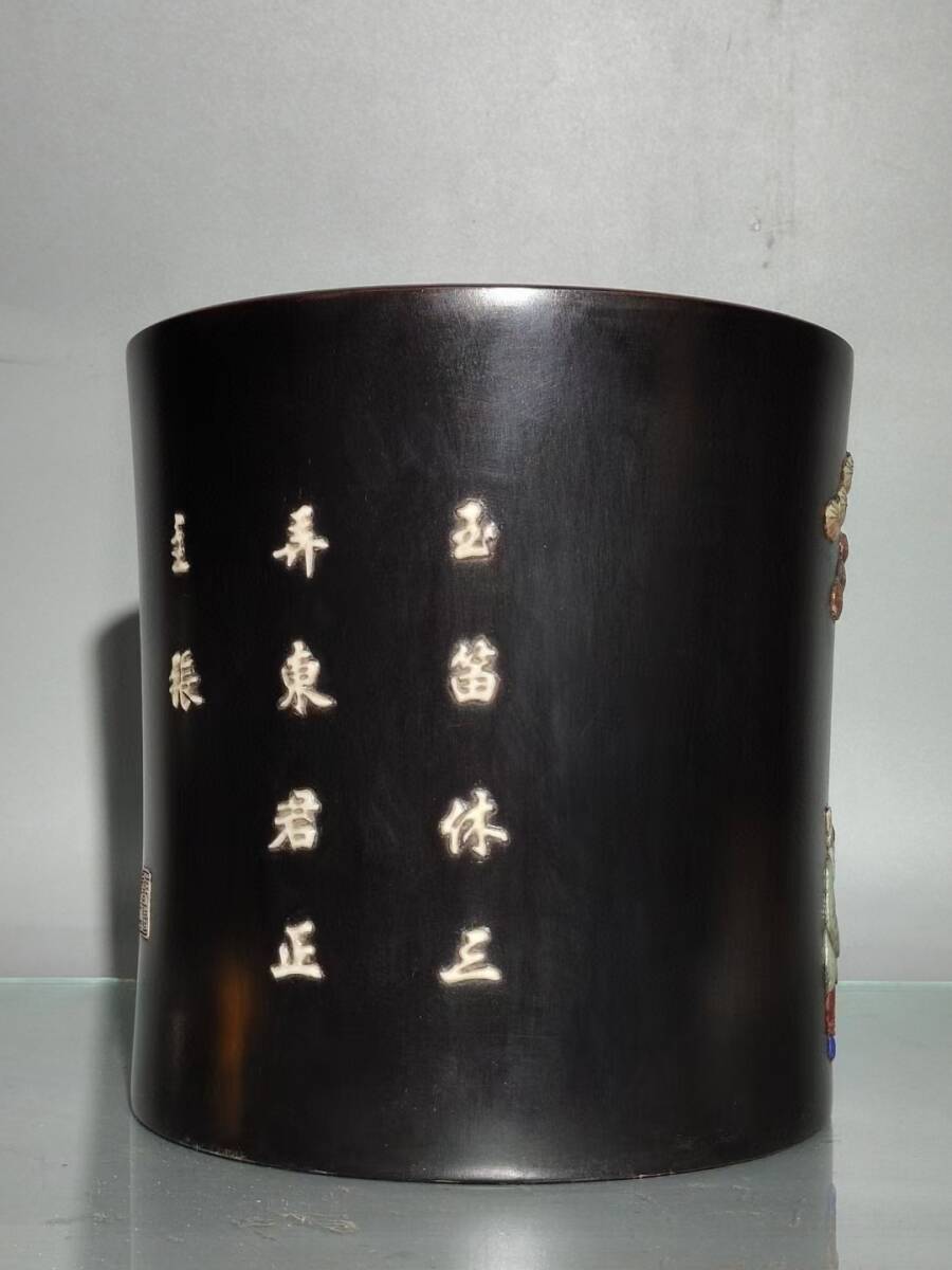 *珍品旧蔵* 清 紫檀嵌多寶筆筒 筆筒 ペン立て 茶道具 置物 擺件 賞物 極細工 唐物 中国古玩 工芸品 ZK0306