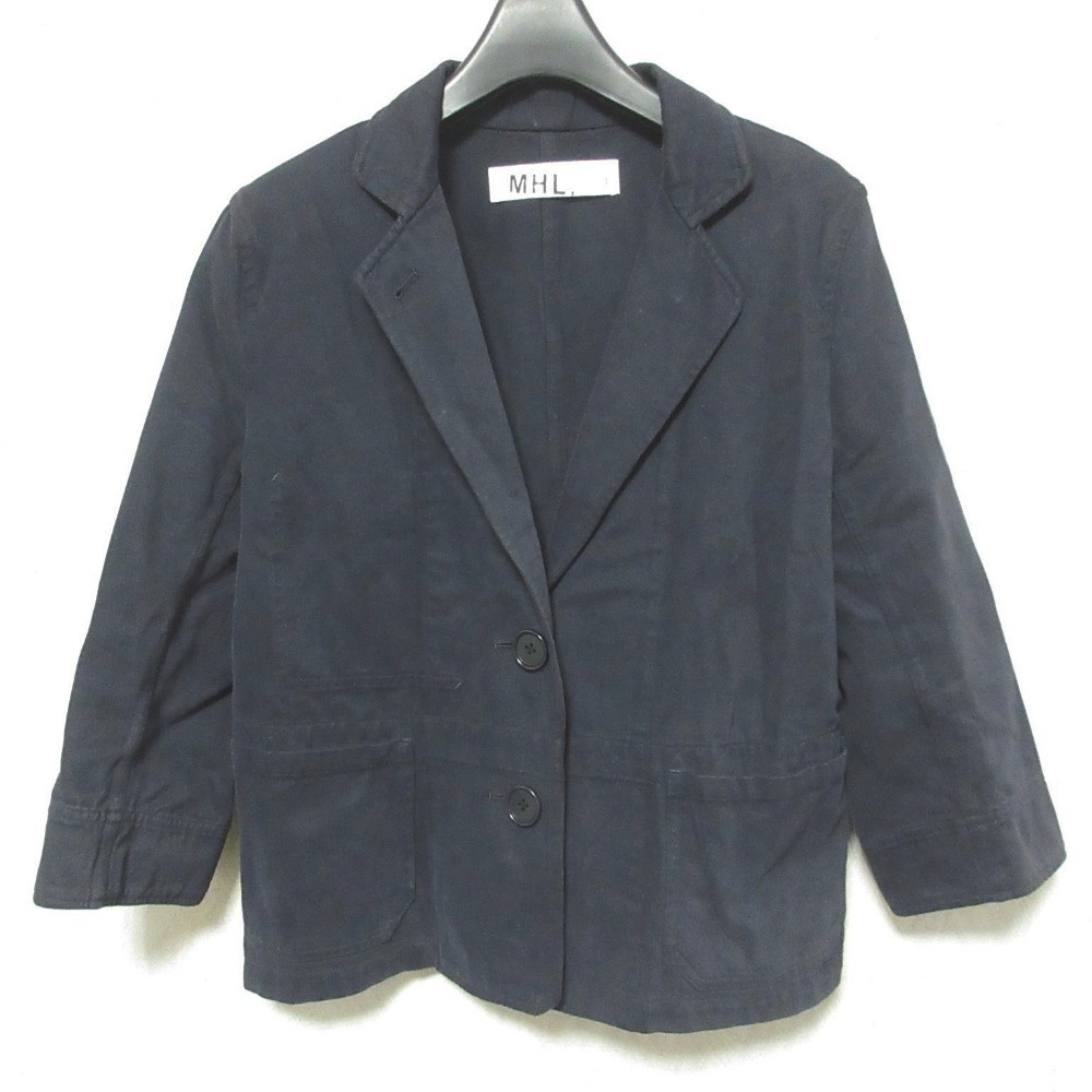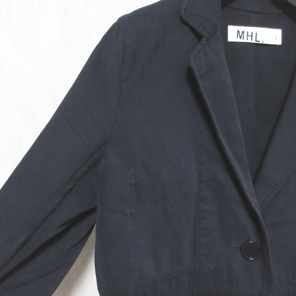 良品 MHL. エムエイチエル マーガレットハウエル オーバーダイ シングル テーラードジャケット 1 ダークネイビー