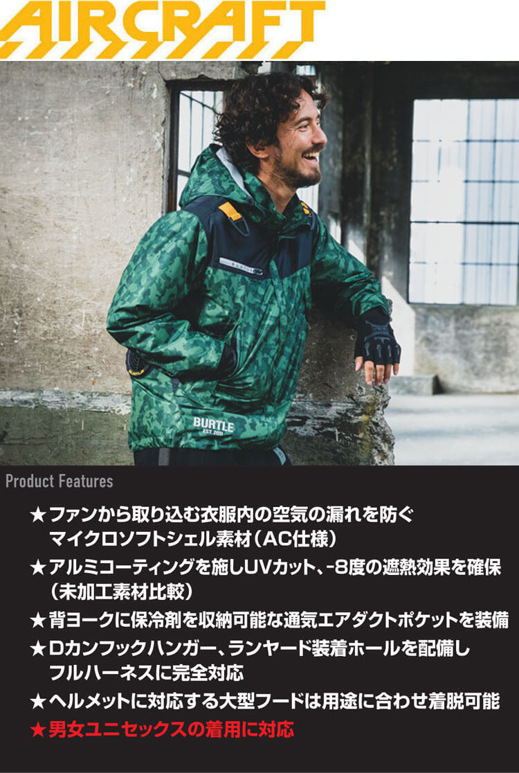 ・ファンから取り込む衣服内の空気の漏れを防ぐマイクロソフトシェル素材(AC仕様)
