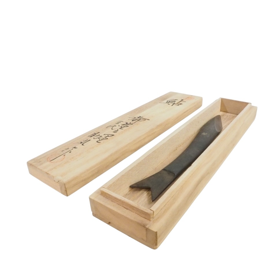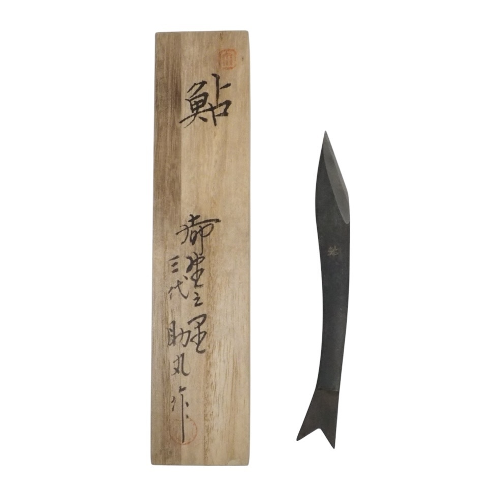 昭和ビンテージ 鋼鉄製 碓氷金三郎 三代助丸作 「鮎」切り出し小刀 在銘品 希少 桐箱付 1980年代 UHN703