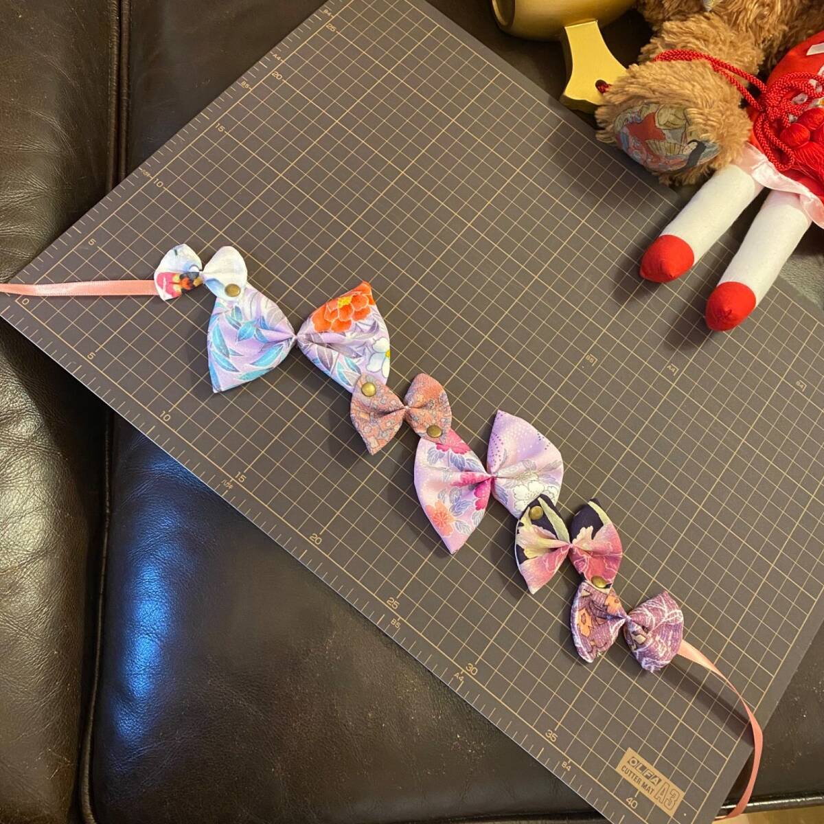 着物生地を使用したリメイクアクセサリー。
