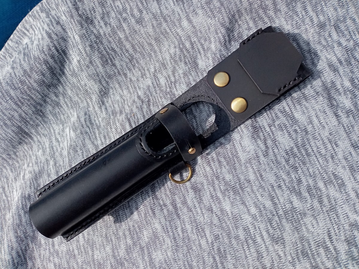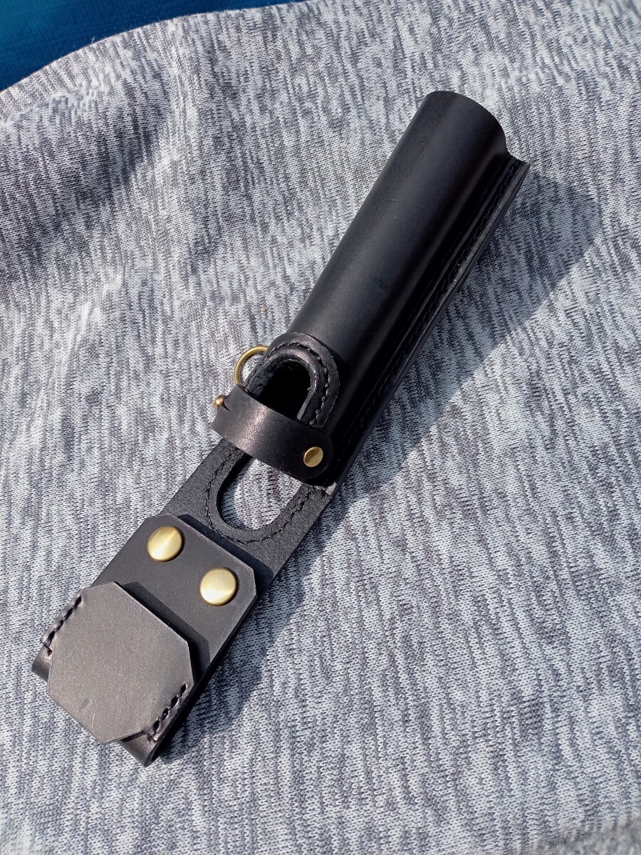 ナチュラルをブラックに染めたレザーです。厚み約3mm前後を使用しています。