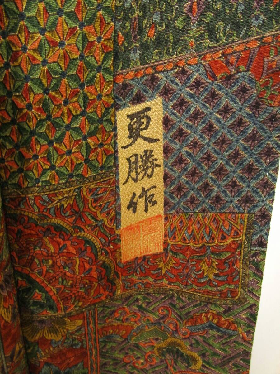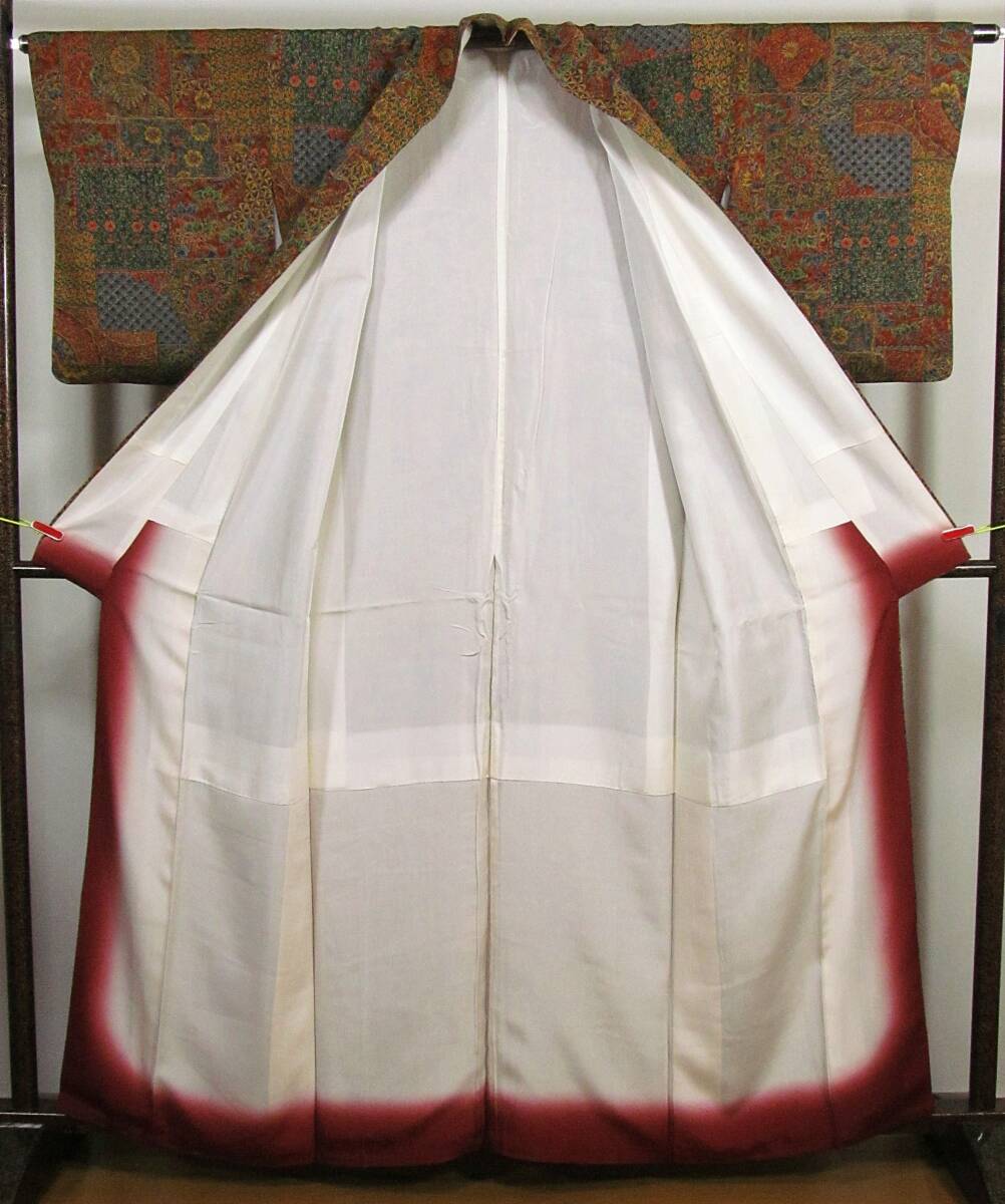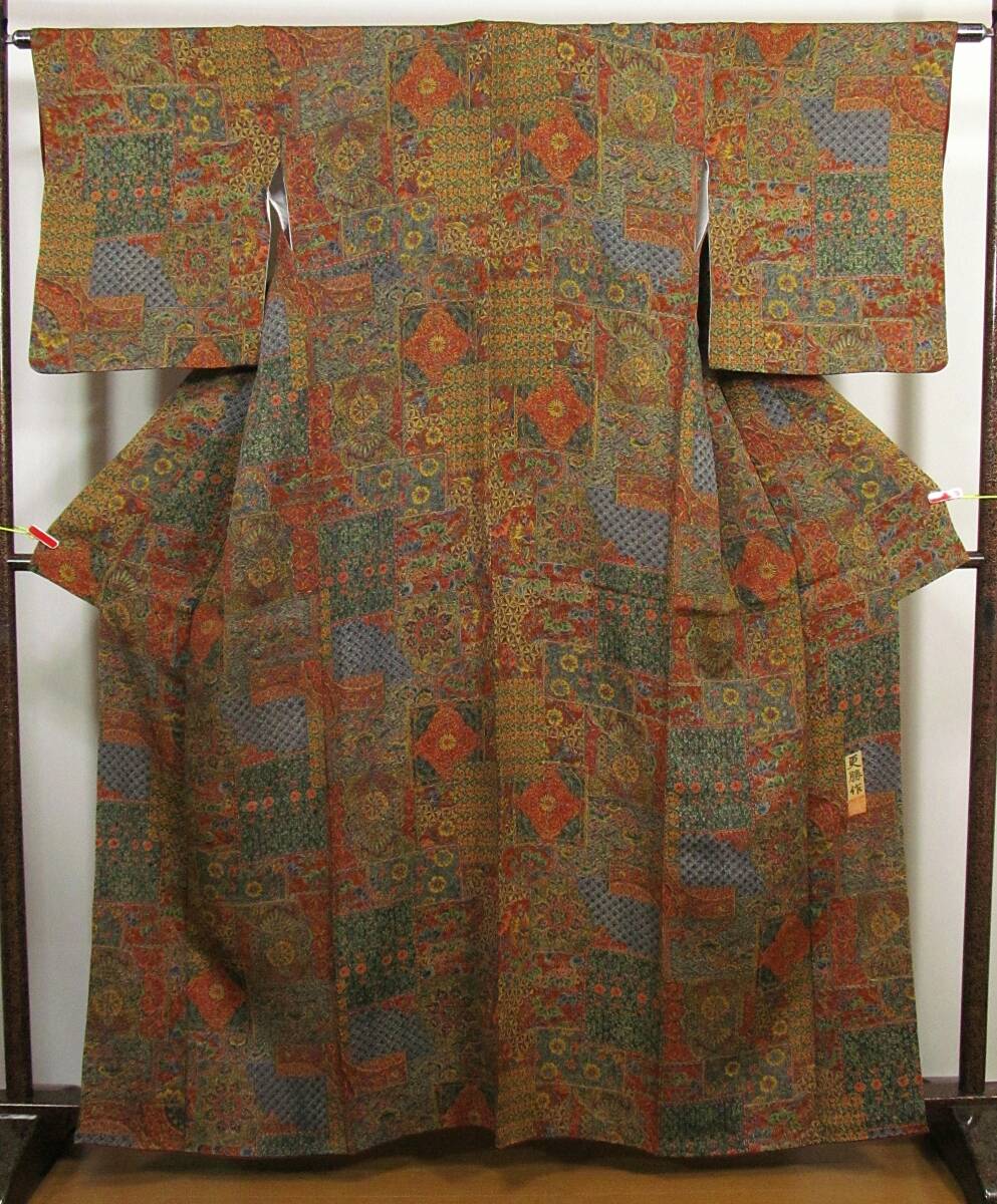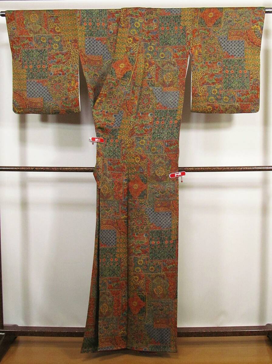な197 正絹 小紋着物 伝統華紋更紗 更勝作 浜ちりめん 花柄 身丈162cm