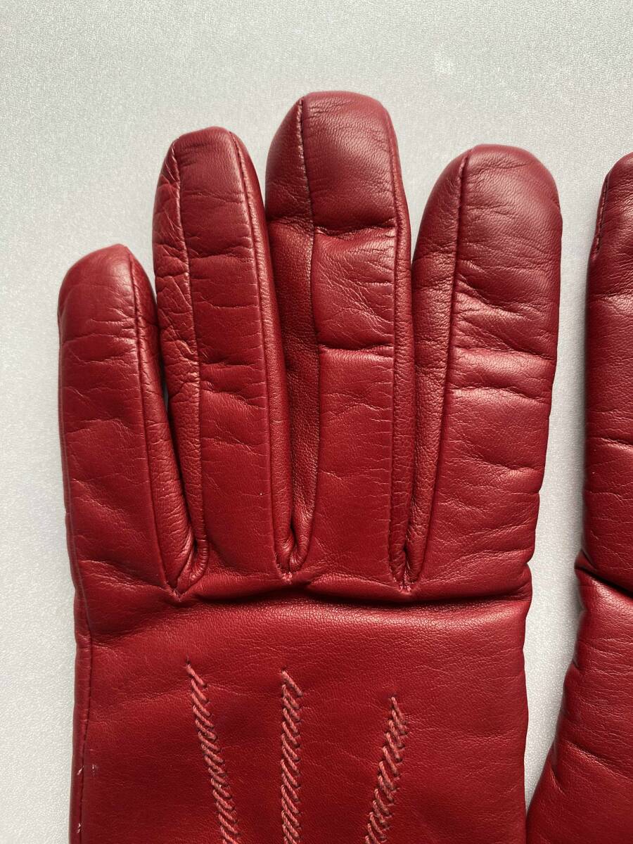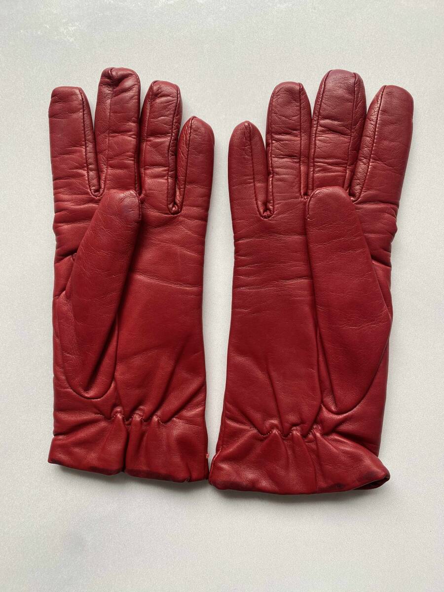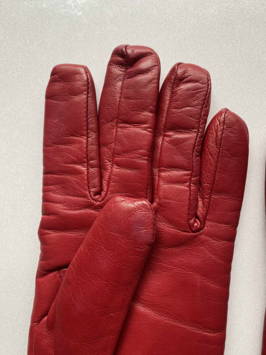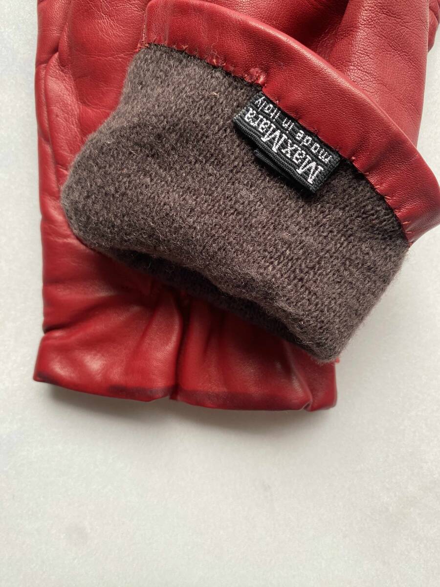 【美品】イタリア製 マックスマーラ レザーグローブ レッド 革手袋 ウール裏地 Max Mara レディースサイズ