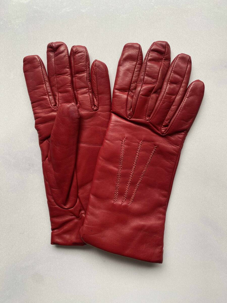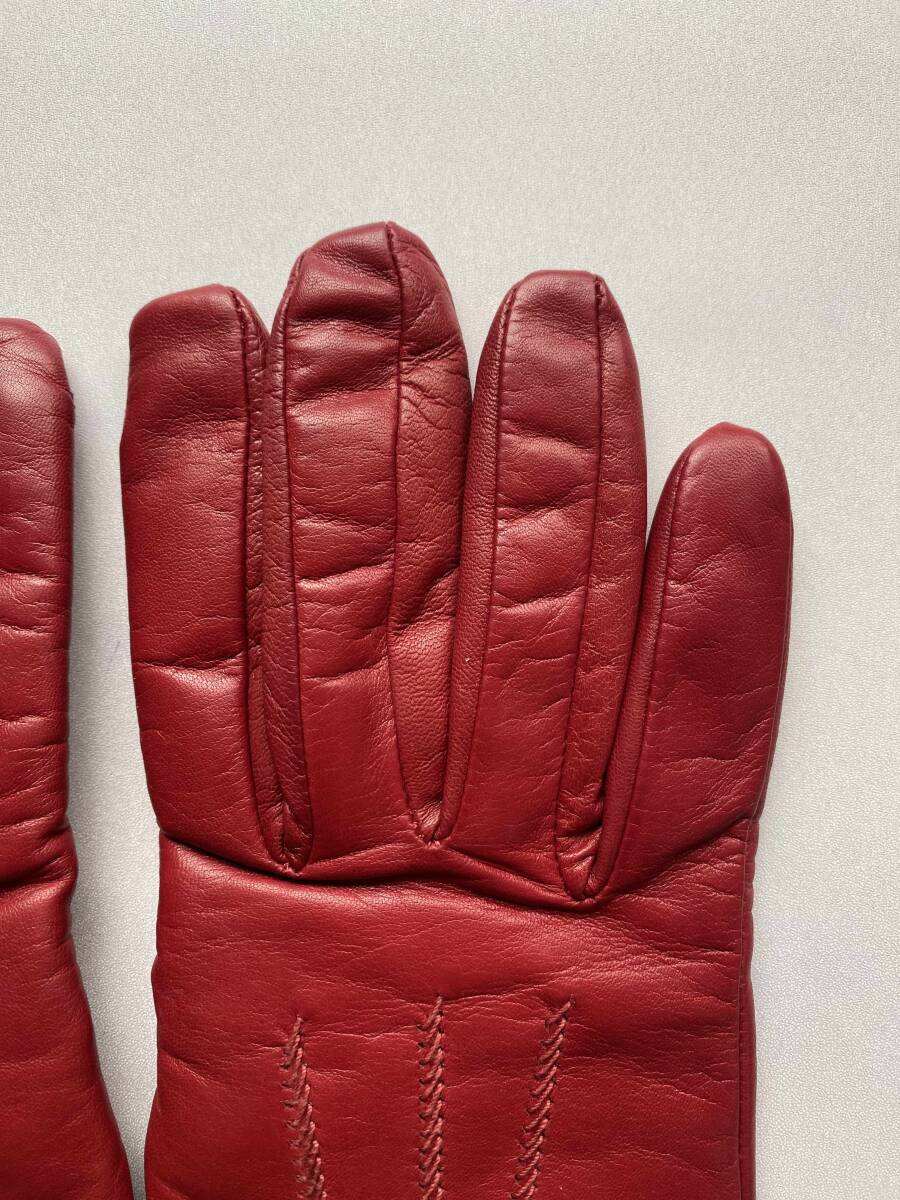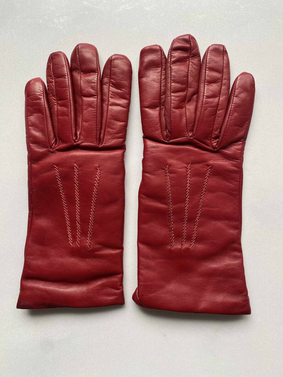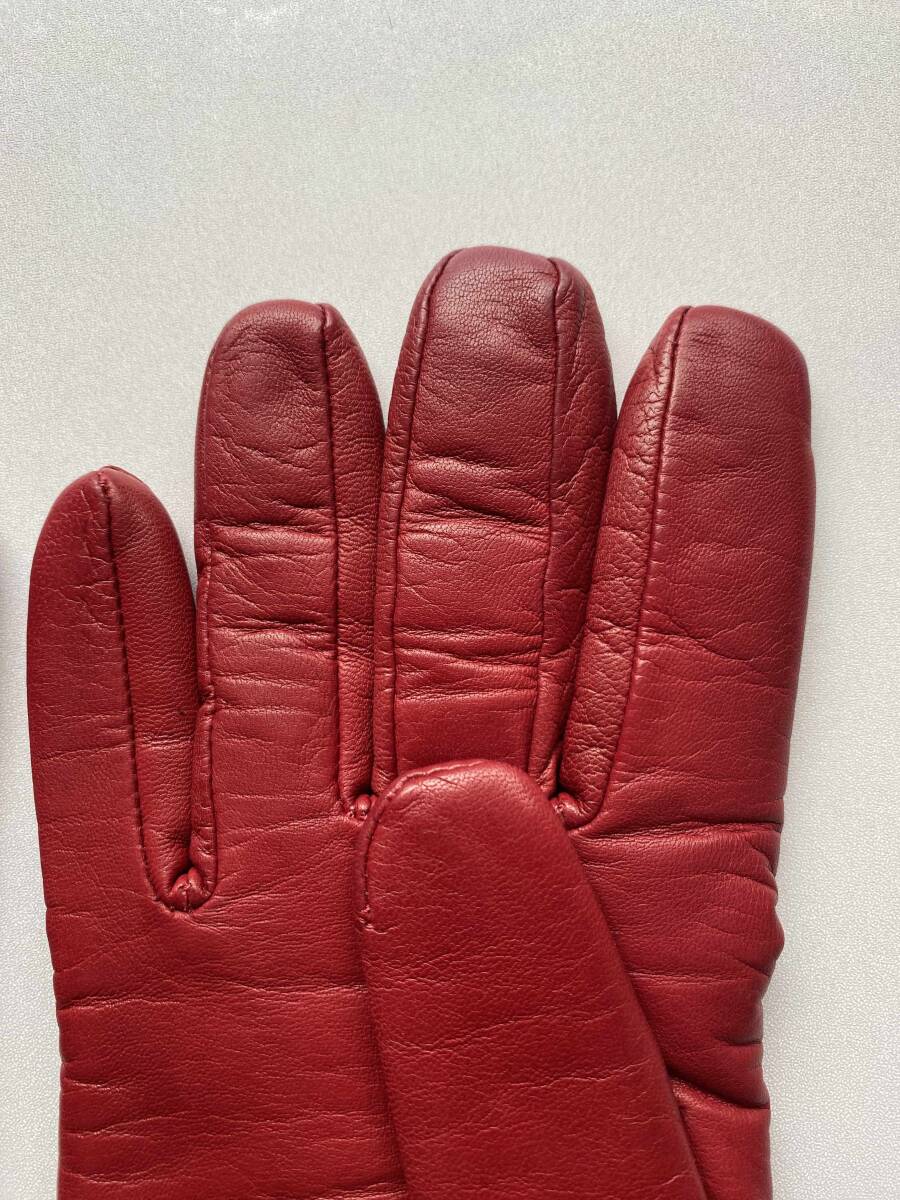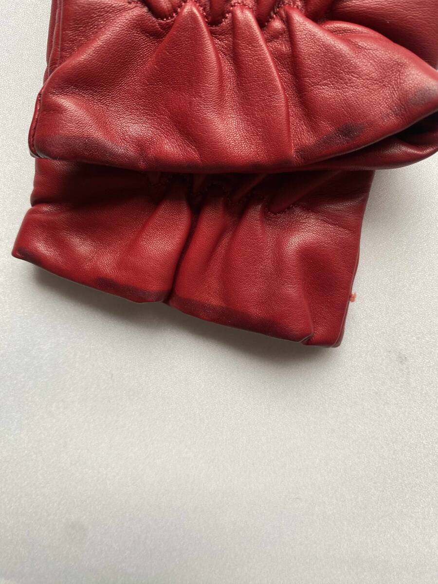 【美品】イタリア製 マックスマーラ レザーグローブ レッド 革手袋 ウール裏地 Max Mara レディースサイズ