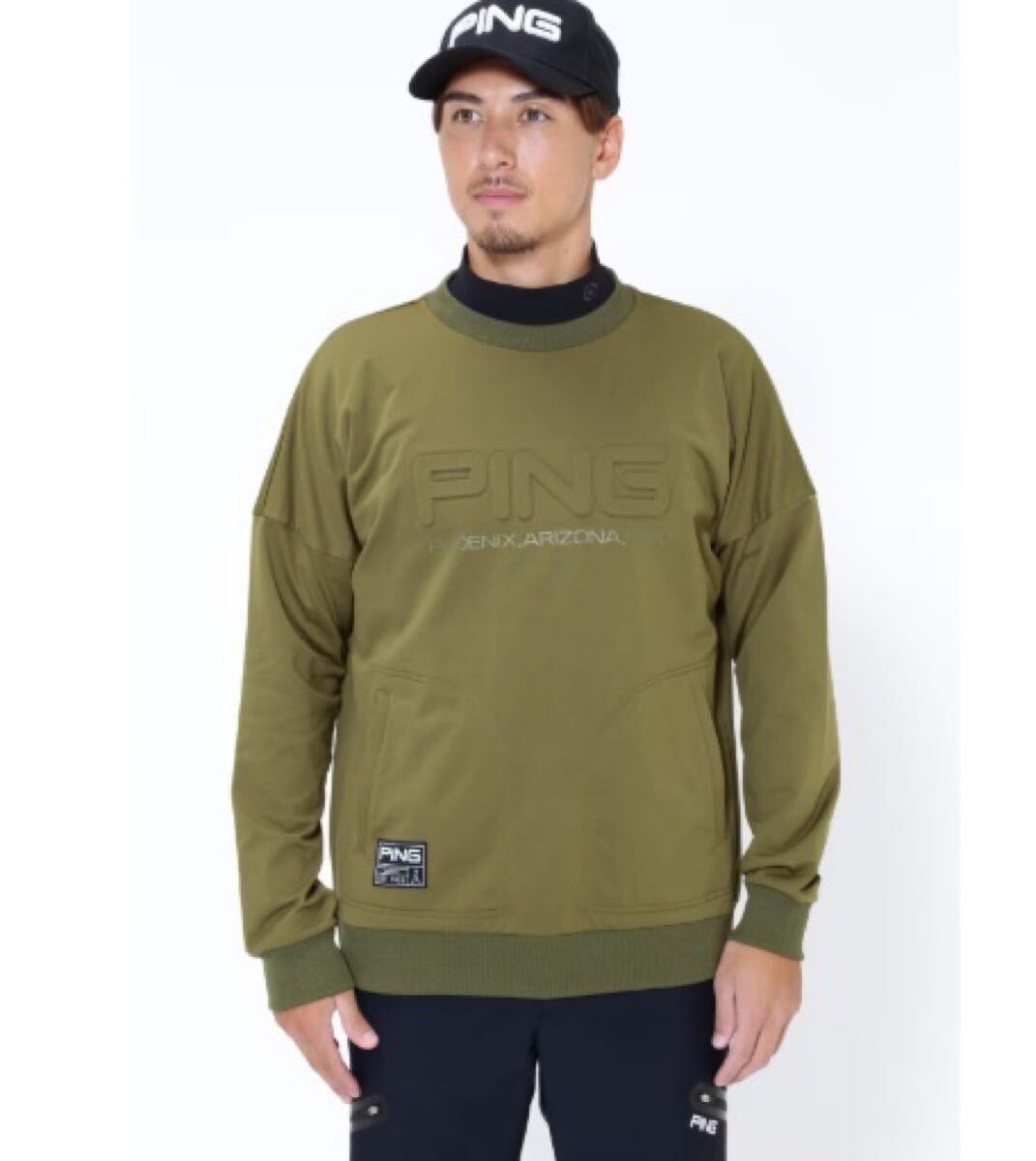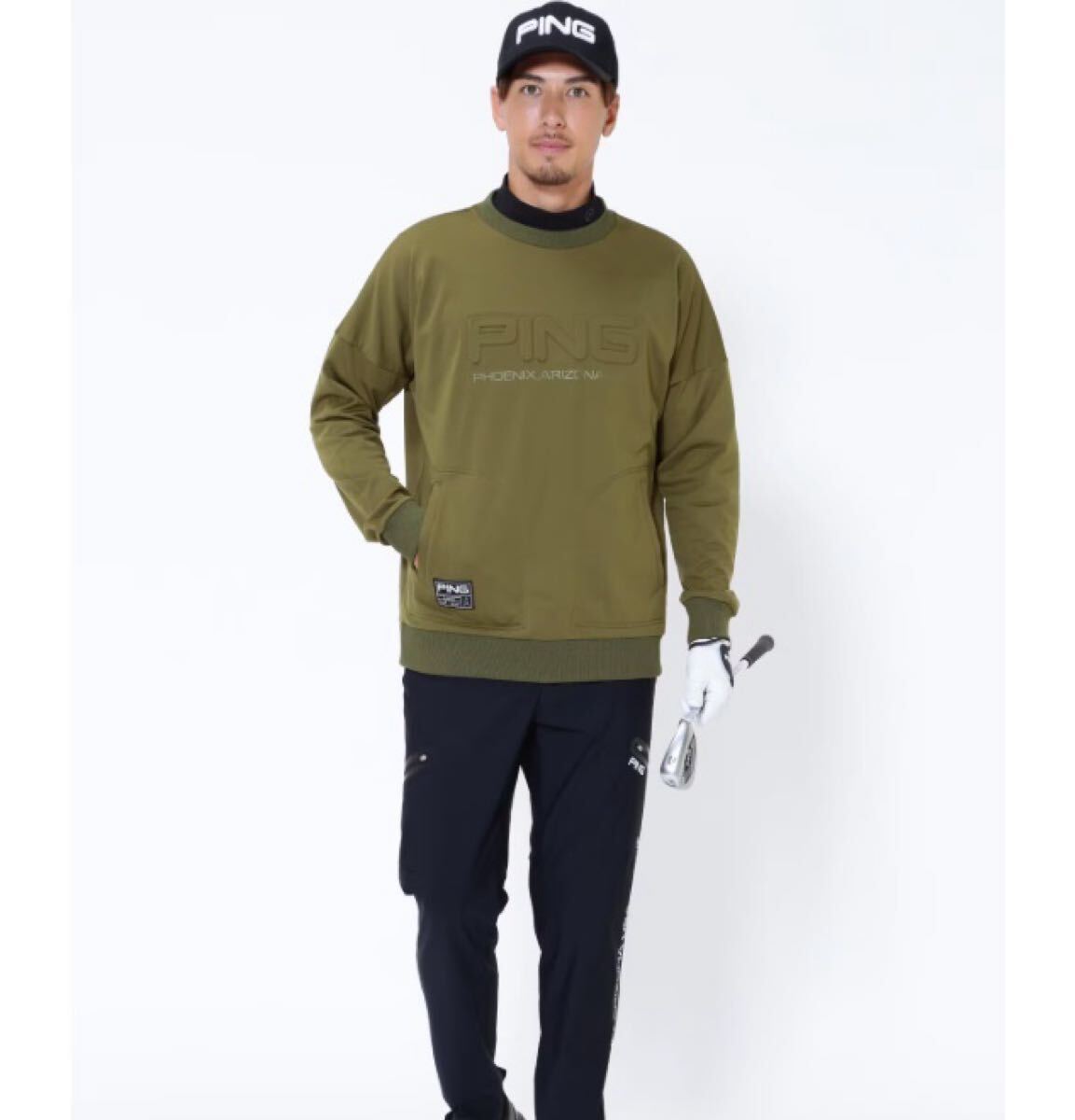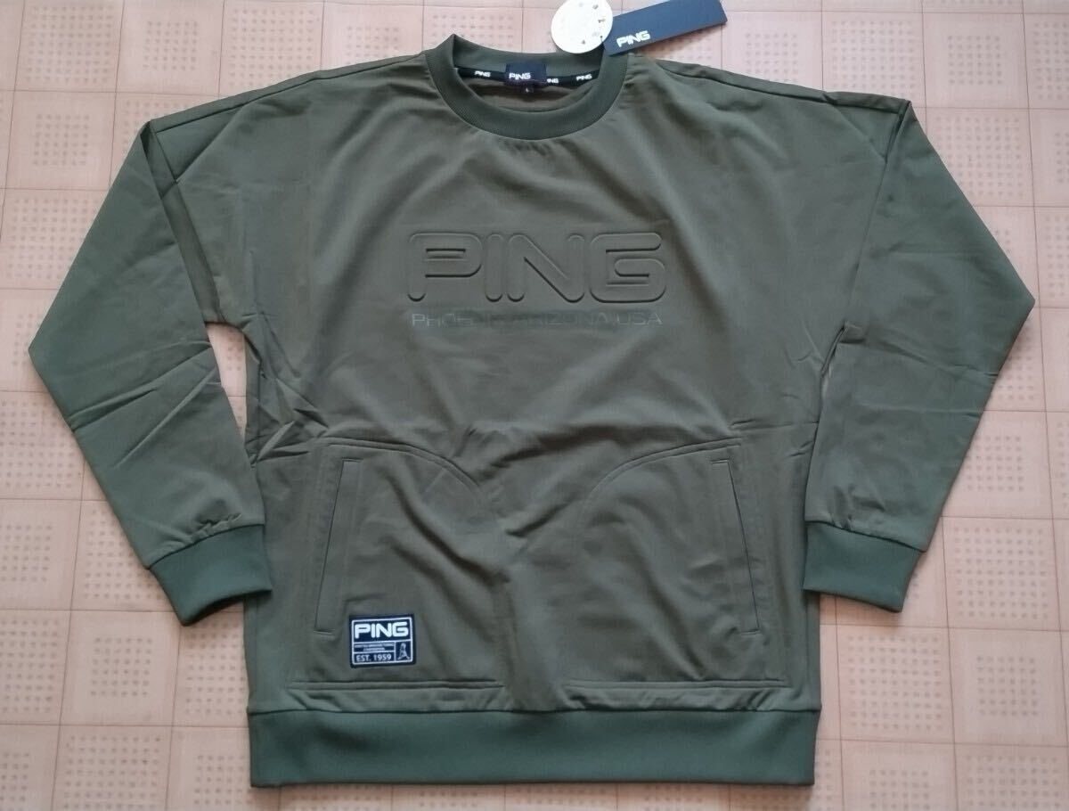 半額以下 即決新品 PING GOLF RENUストレッチ裏毛クルーネックスウェット Sサイズ Mサイズ相当 カーキ ピンゴルフ