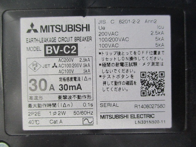 漏電遮断器 2P2E30A(ネジ不足) 三菱電機 BV-C2