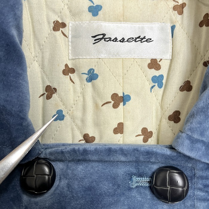 商品タイトル | Fassette 中綿入り ジャケット クローバー柄のキルティング裏地 ベルベット フロッキー生地 長袖 綿など LL XL (13AR) ブルー レディース |