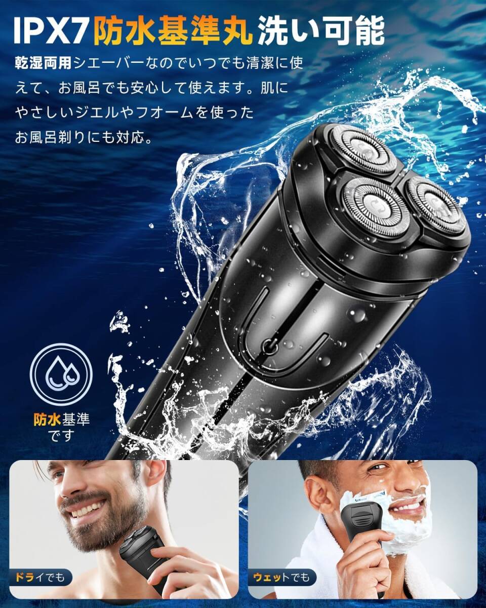 • 【IPX7防水&乾湿両用】IPX7防水設計なので、水洗いはもちろん、シェービングフォームやシェービングジェルも使用でき、肌への負担の少ないウェット剃りをしたい人にオススメです。お手入れも便利で、いつでも手軽に清潔を保てます。