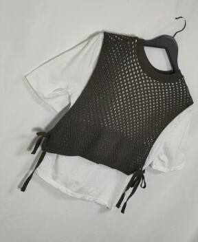 | 商品名 | 半袖カットソー 異素材 編み込みニット サイズEUR S |
