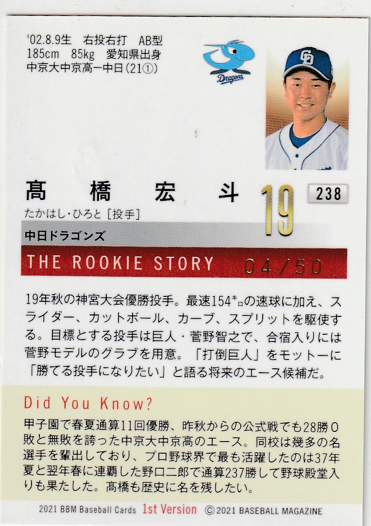 50枚のシリアルナンバーとホロ箔サインが入ったパラレルカードです。状態は美品だと思いますが画像をご覧になってご判断ください。白い点状のものはスキャナーの埃で現物にはありません。
