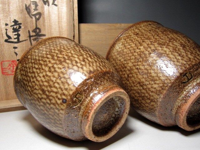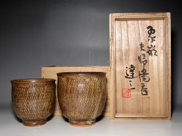 ※特別値引※人間国宝 島岡達三 象嵌夫婦湯呑 温もりのある手取りの逸品    v568