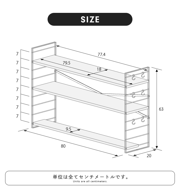 | 幅80×奥行20×高さ63cm |
