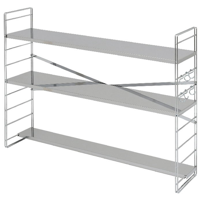 | コンロ奥の隙間を有効活用!排気口カバー付きコンロ奥ラック (75cmコンロ用) コンロ奥ラックに収納+排気口カバー+ツール掛けの3つの機能をプラス。 汚れをカバーしながらキッチン周りをすっきり整頓できる優れもの。 最下段の棚は排気口カバーとして使用でき、魚焼きグリルを使用時はカバーをスライドさせるだけでOK。 棚板は汚れに強いステンレス製、すぐに取り外してお手入れできるので衛生的。 安心の日本製ラック。 |
