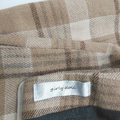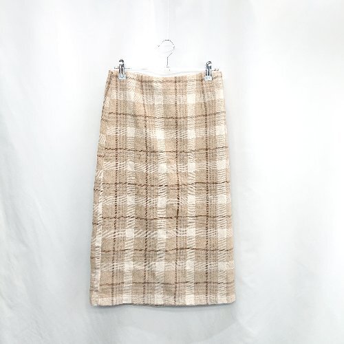 ◇ ⊇ girly doll チェック柄 スリット加工 膝丈 タイト スカート サイズ表記なし ライトブラウン ベージュ系 レディース E